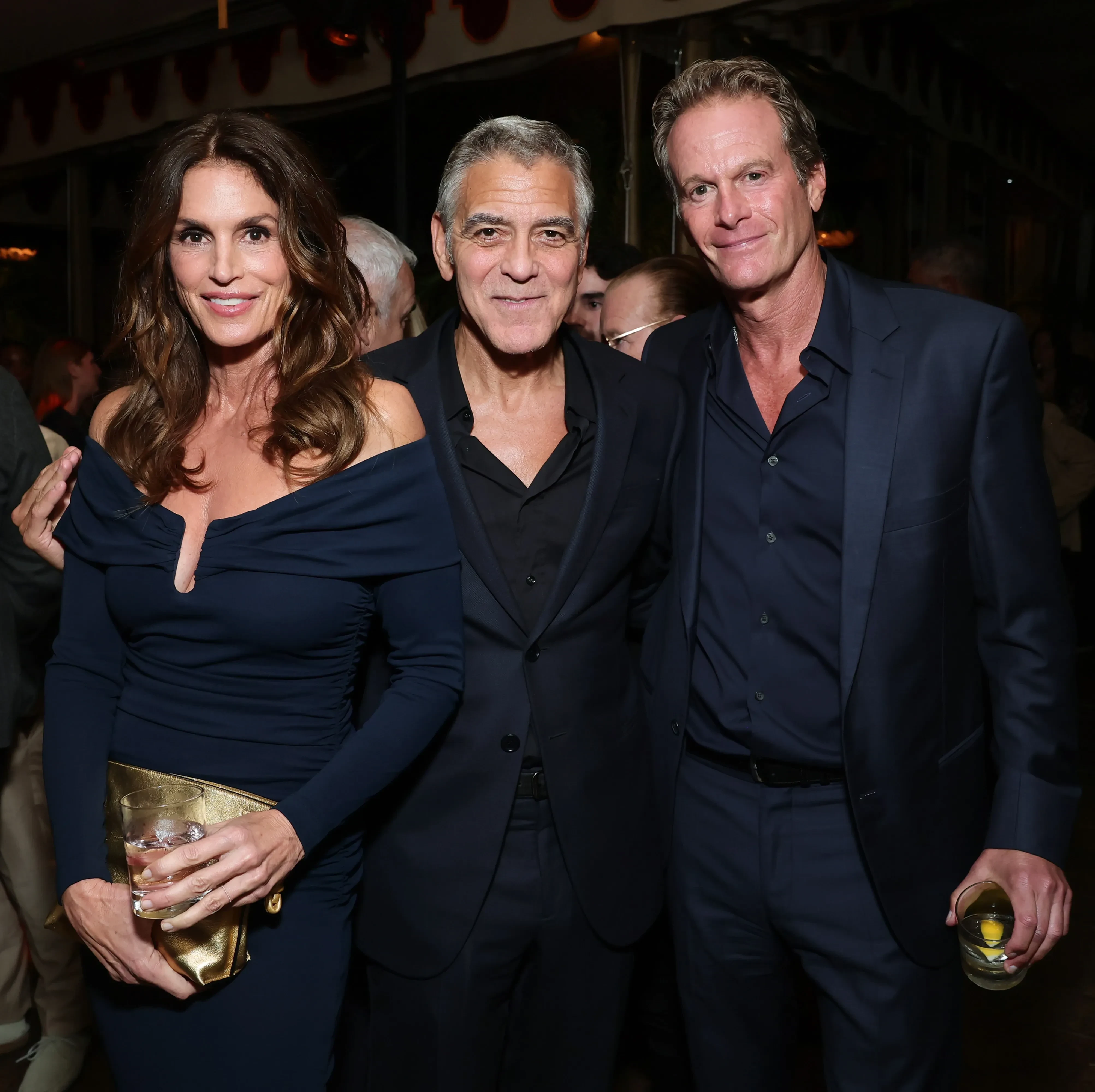 Инес де Рамон, Брэд Питт и Ив ХьюсонИнес де Рамон и Брэд ПиттНа вечеринке также присутствовали 64-летний Джордж Клуни и супермодель Синди Кроуфорд с мужем Рэнди Гербером, а на красную дорожку премьеры вышел исполнитель одной из главных ролей в фильме — Адам Сэндлер — вместе с женой Джеки и дочерьми Сэди и Санни.