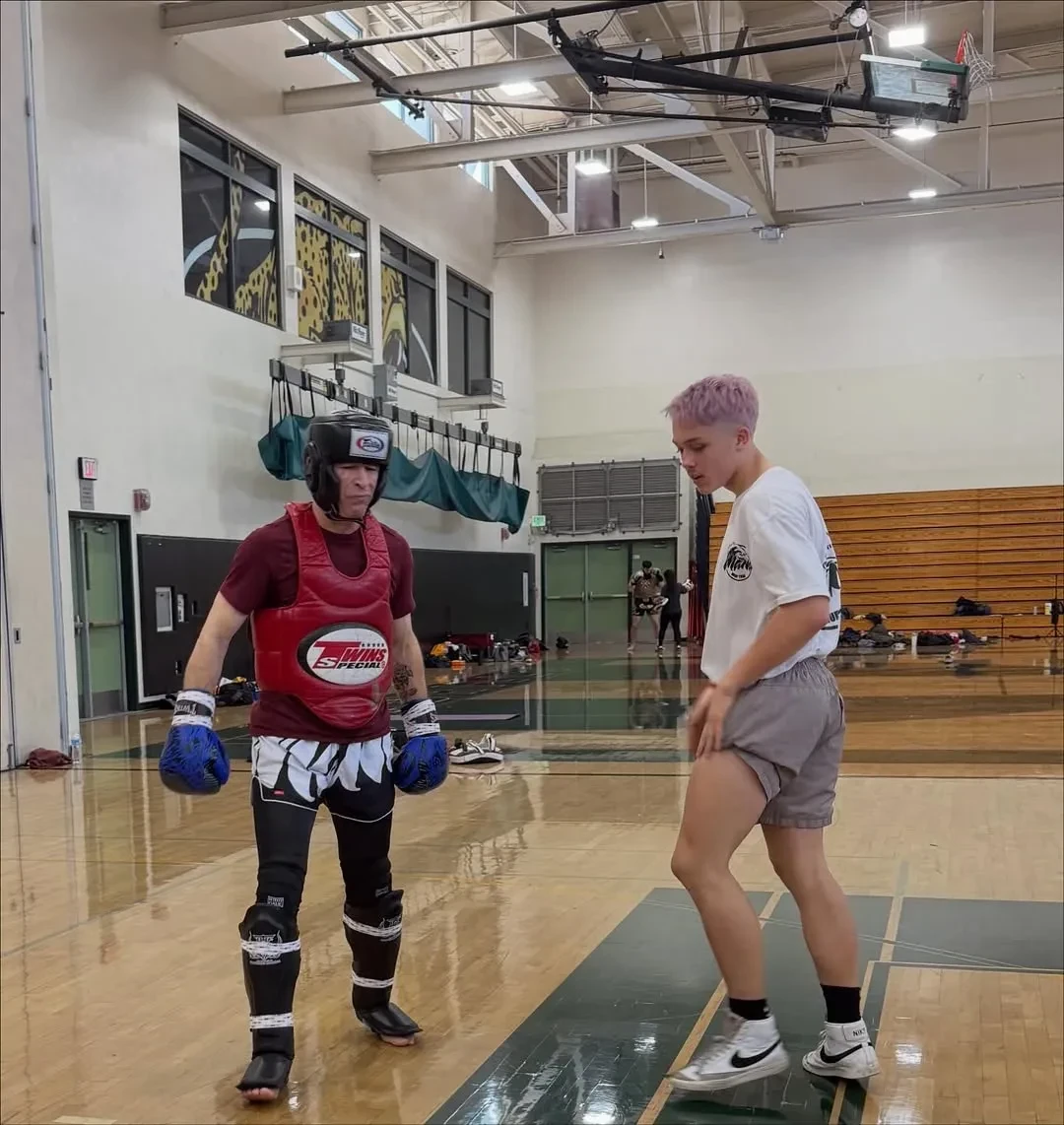 Младший сын Анджелины Джоли и Брэда Питта сменил имидж. На днях 17-летнего Нокса Леона засняли на занятиях по тайскому боксу, и на снимках видно, что он перекрасил волосы из своего натурального русого в розовый цвет.