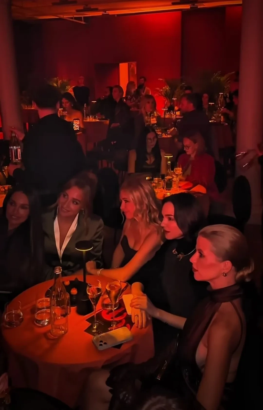 Снежанна Георгиева, Яна Рудковская, Полина Гагарина на спектакле с участием Екатерины Варнавы и жениха Евгении Медведевой