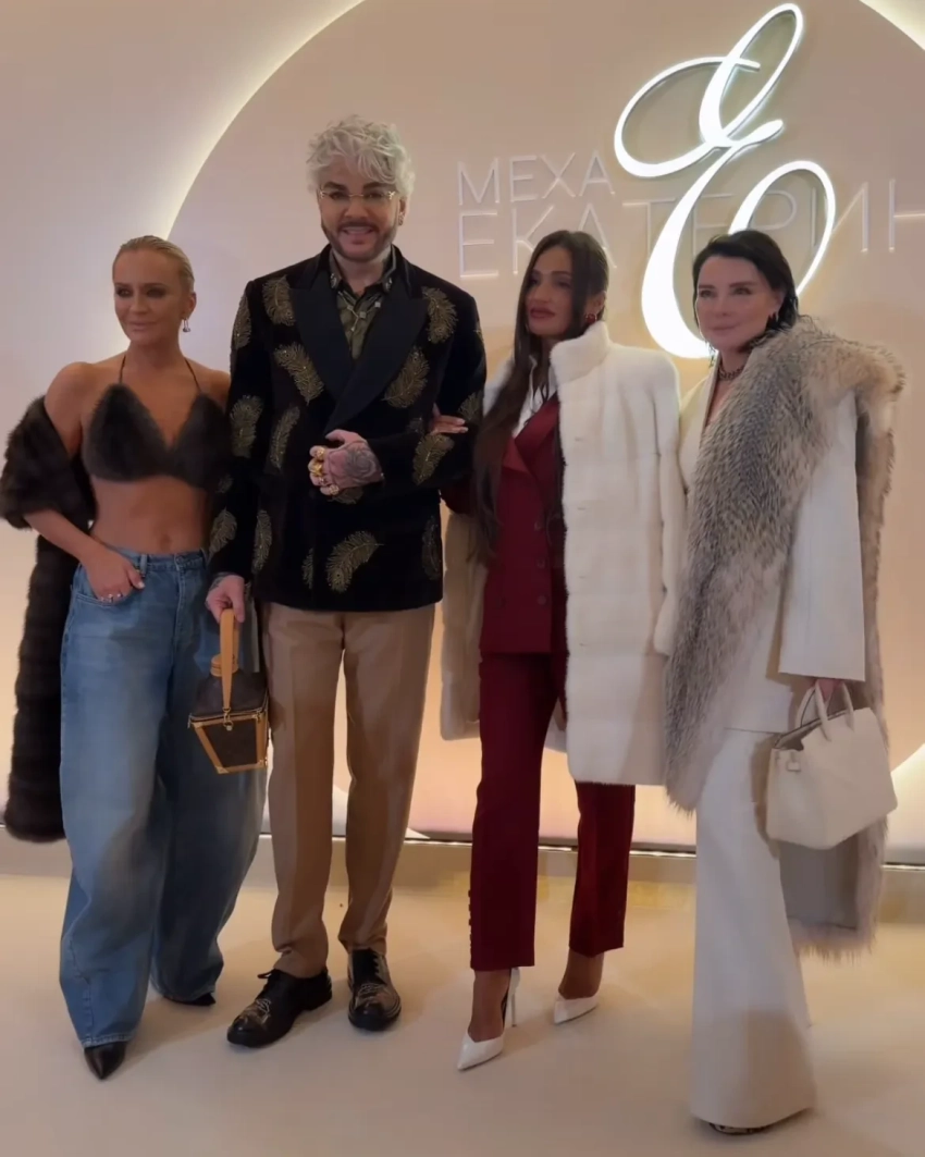 В отеле Four Seasons в Москве прошёл показ новой коллекции бренда "Меха Екатерина". На мероприятии собралось много известных гостей. Среди них: Филипп Киркоров, Андрей Малахов, Яна Рудковская, Елена Малышева, Олеся Судзиловская, Виктория Шелягова с мужем Олегом и дочерью Варварой, Анжелика Агурбаш, Наташа Королёва, Инга Берман, Алексей Жидковский, Кристина Потупчик, соосновательница Ushatava Нино Шаматава, супруга владельца "Эксмо" Инесса Шевчук и многие другие.