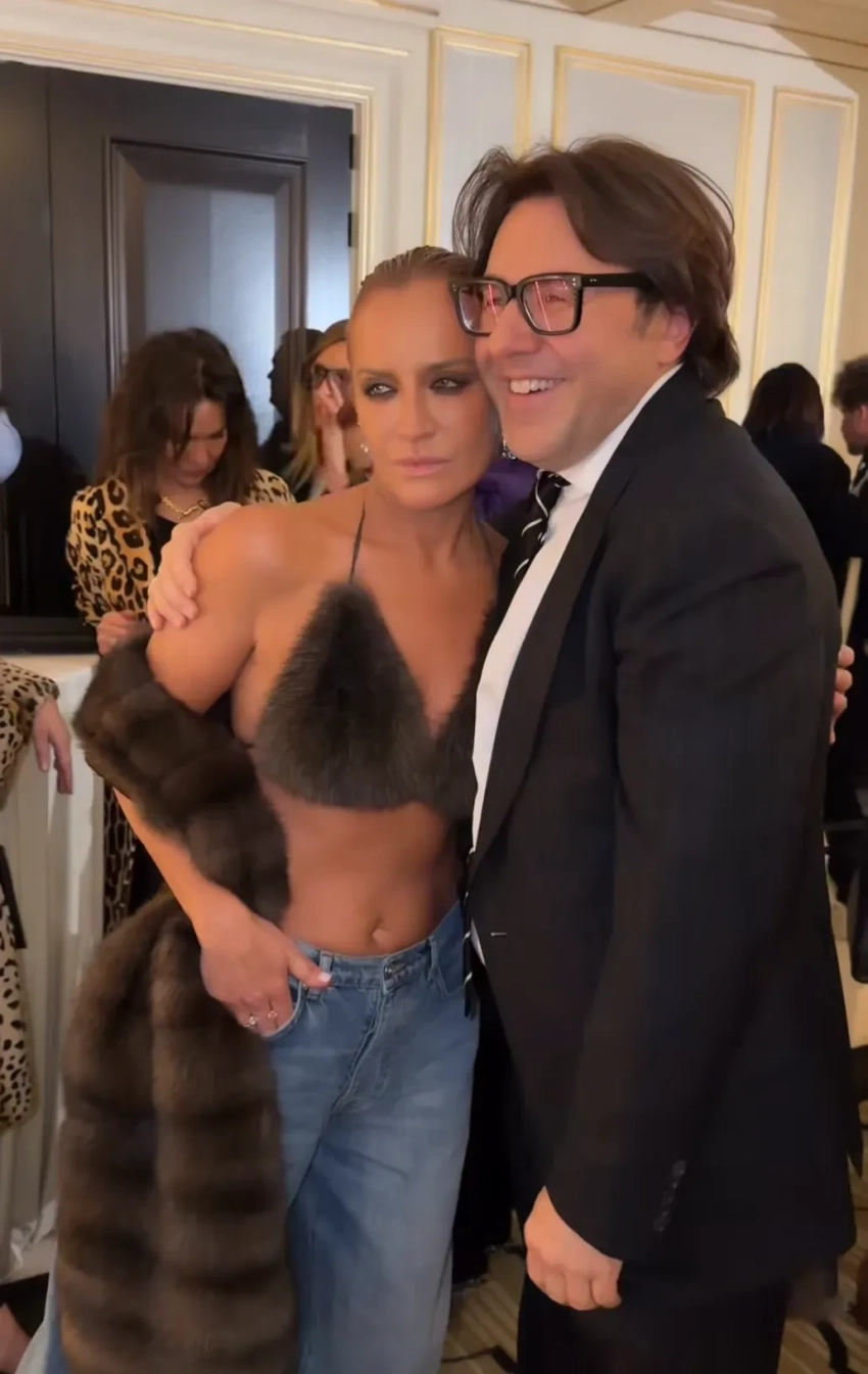 Филипп Киркоров, Андрей Малахов, Виктория Шелягова (в меховом бюстгальтере) и Яна Рудковская на показе "Меха Екатерина"