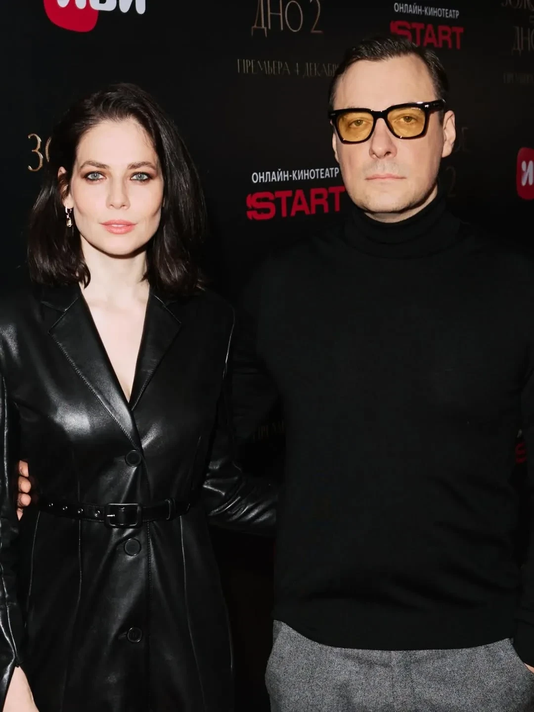 42-летняя Снигирь вышла на дорожку в кожаном платье-тренче Viva Vox, а 46-летний Цыганов позировал рядом с супругой в чёрной водолазке и солнцезащитных очках.