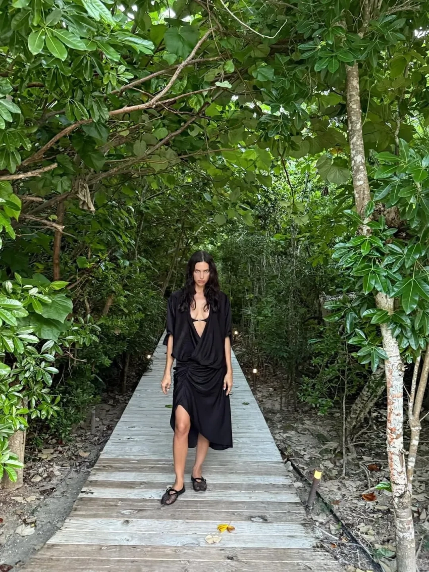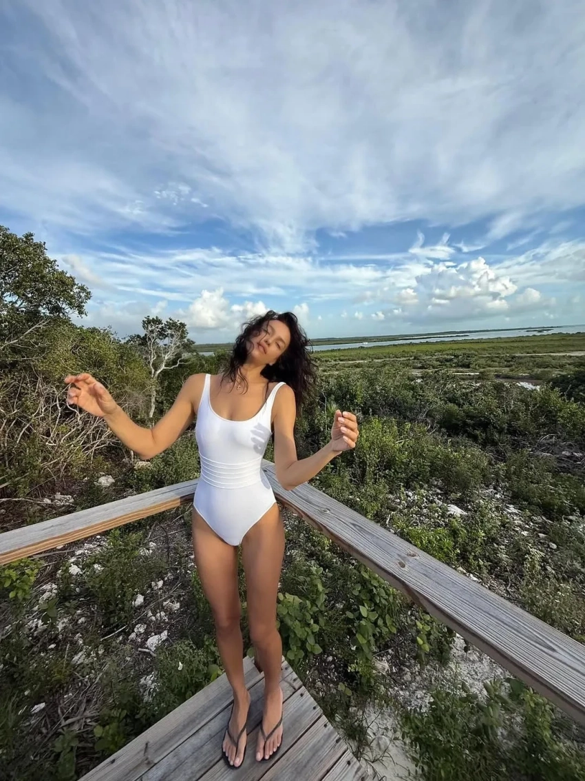 39-летняя Ирина Шейк опубликовала в соцсетях фото из отпуска. На снимках российская супермодель позирует в бикини на пляже и на фоне тропического пейзажа, гуляет по территории в чёрном платье и купается в бассейне топлес. В отпуске Шейк также не забывает заниматься йогой и другими активностями.
