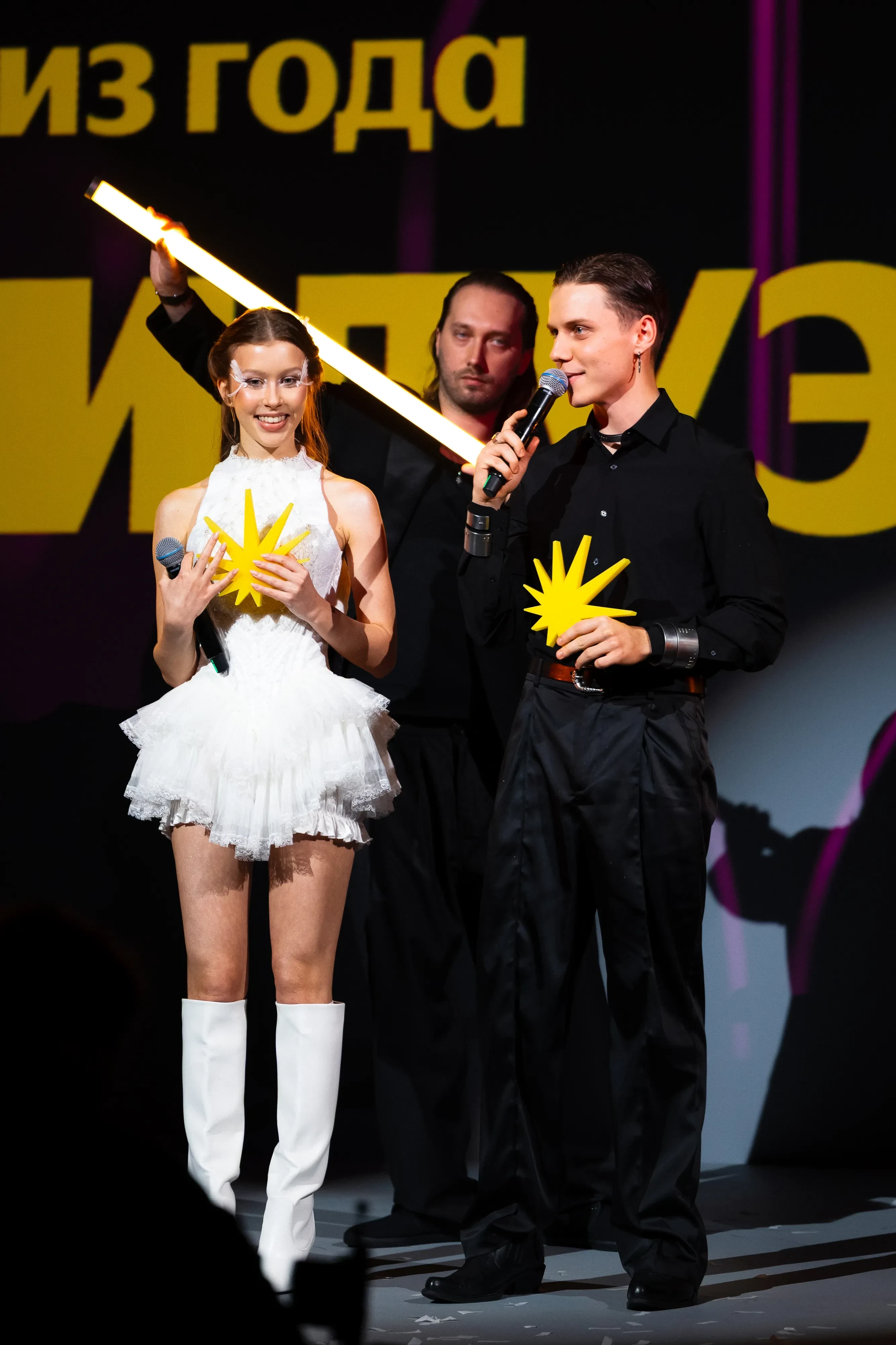 3 декабря в Московском международном Доме музыки состоялась церемония вручения наград премии "Итоги года Яндекс Музыки". Гостями мероприятия стали Анна Пересильд и Ваня Дмитриенко, с которыми на красной дорожке позировал дизайнер Гоша Рубчинский, а также Филипп Киркоров, Сергей Шнуров, Катя IOWA, Клава Кока, Валерия, Мари Краймбрери, Зара, Анна Седокова (в платье с "хищным" принтом), NAVAI и Анастасия Миронова и другие.