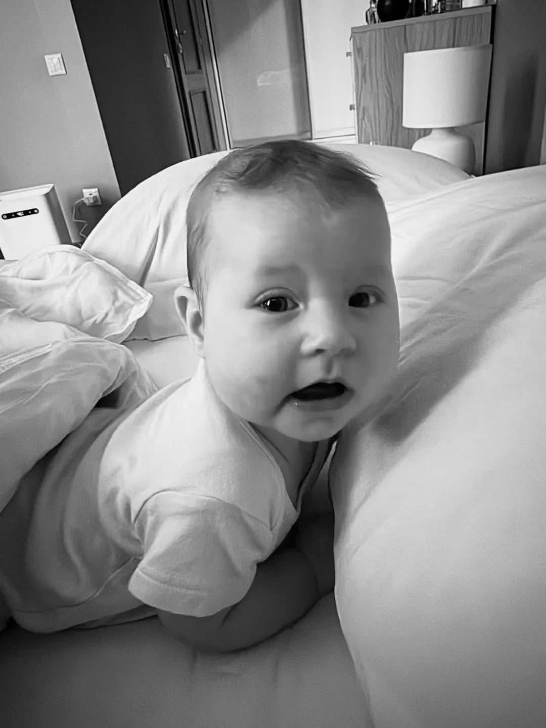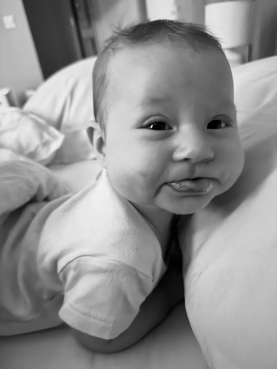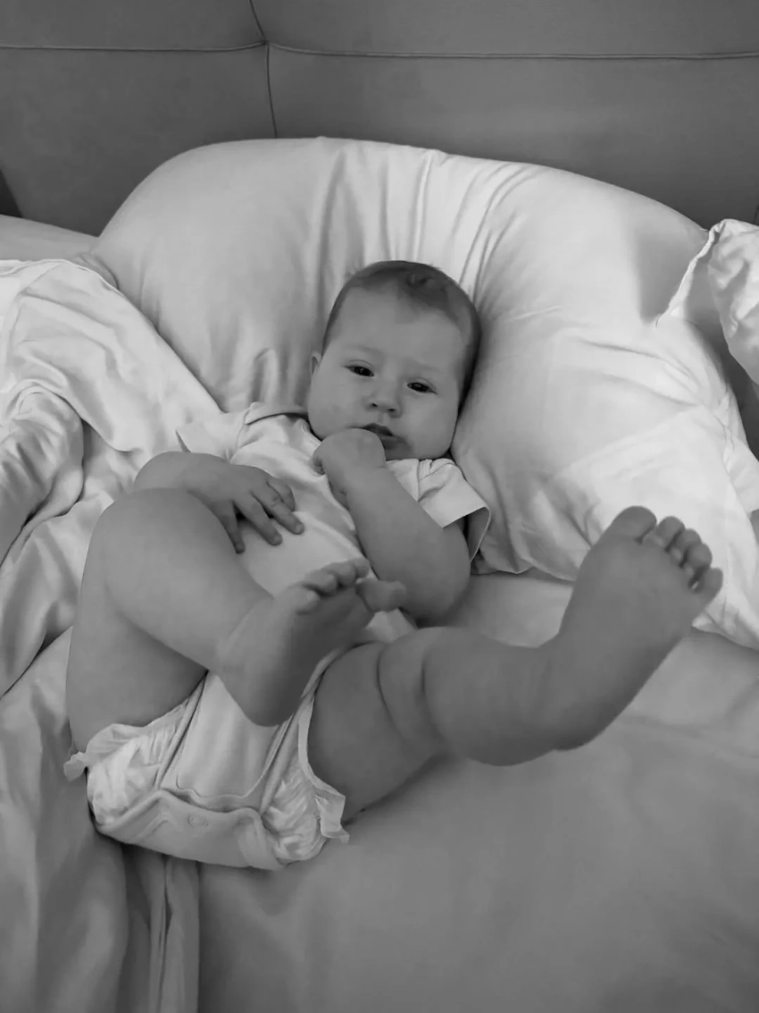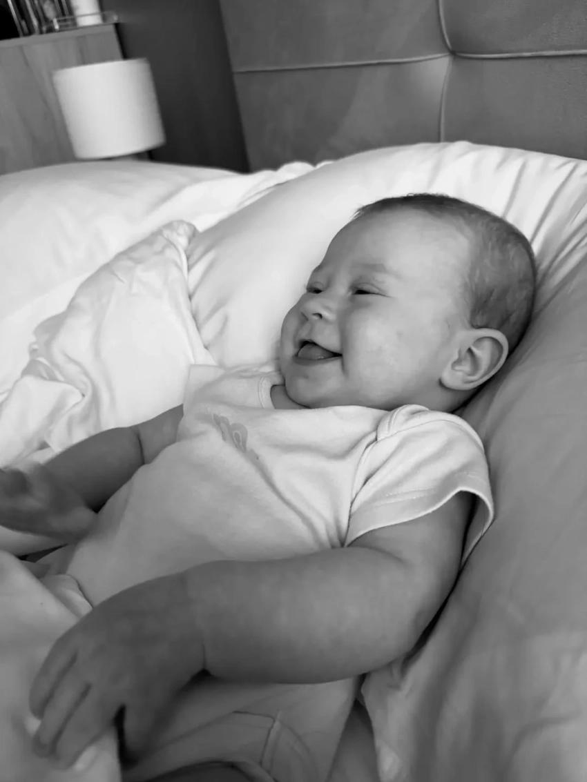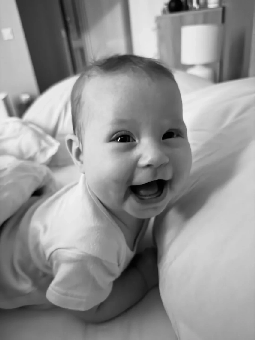 На чёрно-белых снимках ребёнок блогерши лежит на кровати. "А может быть что-то слаще этих улыбающихся щёчек? Вот только же родила, а уже скоро пять месяцев человеку", — подписала снимки Галич.