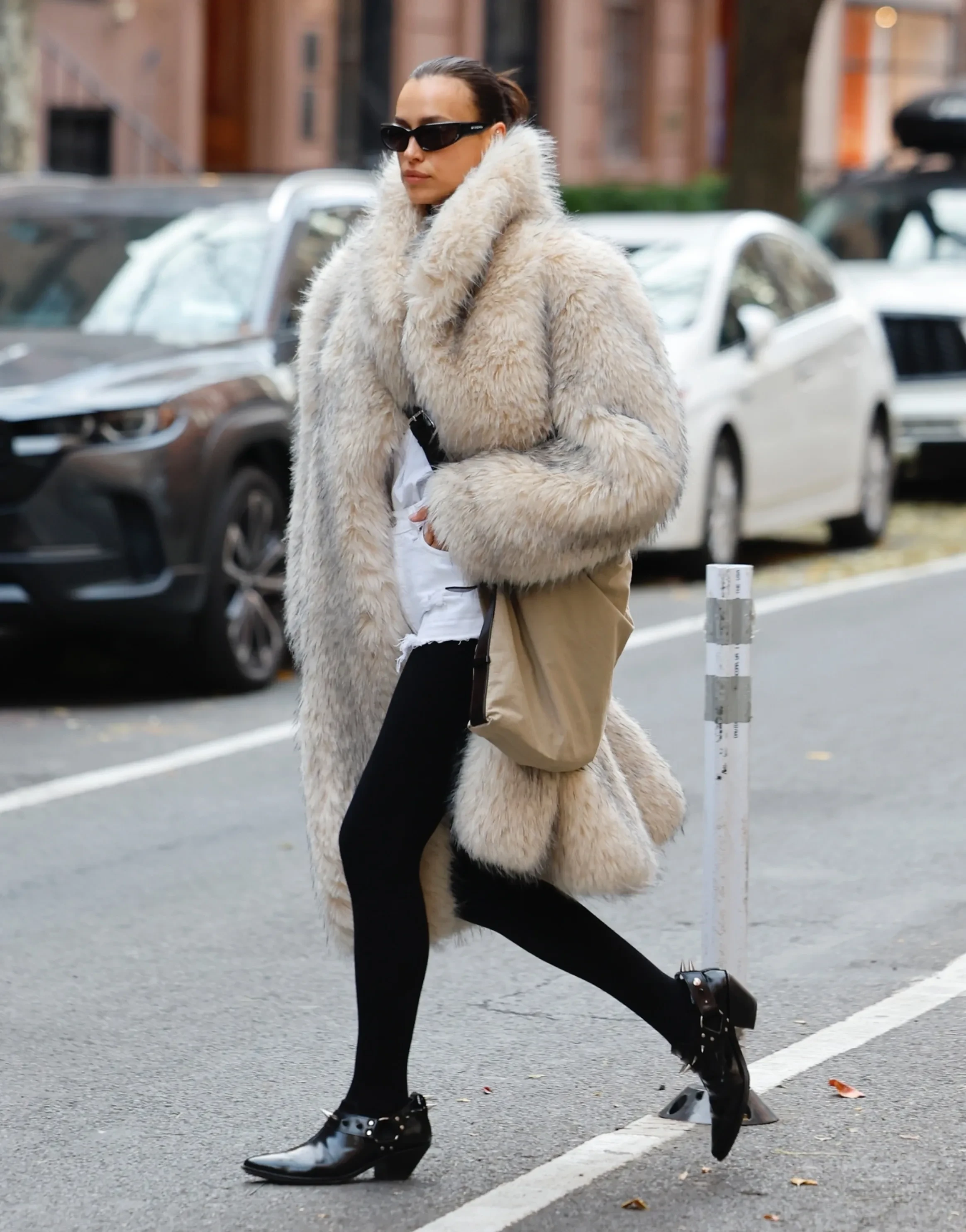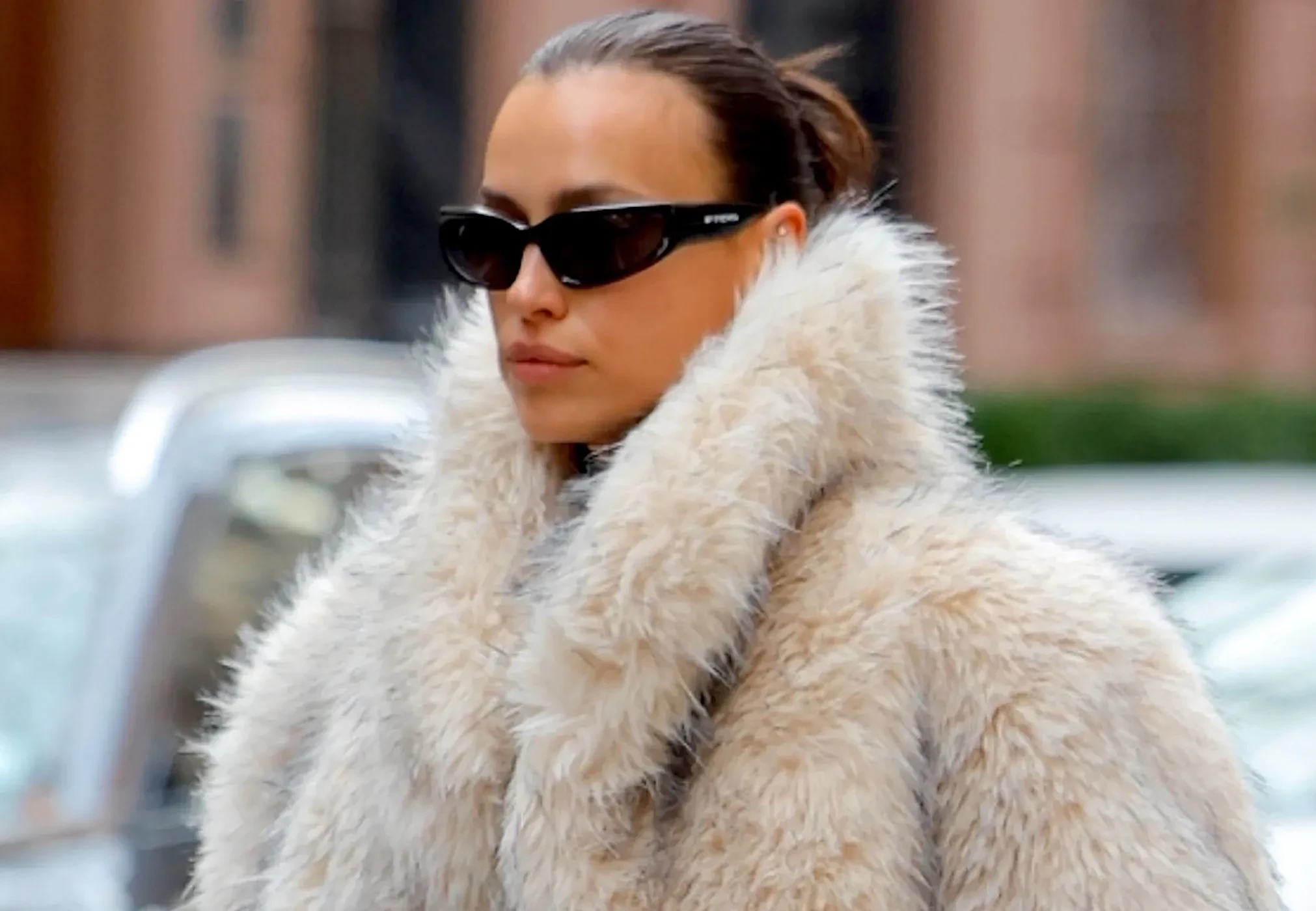 Ирина Шейк вышла на прогулку в шубе и мини-шортах