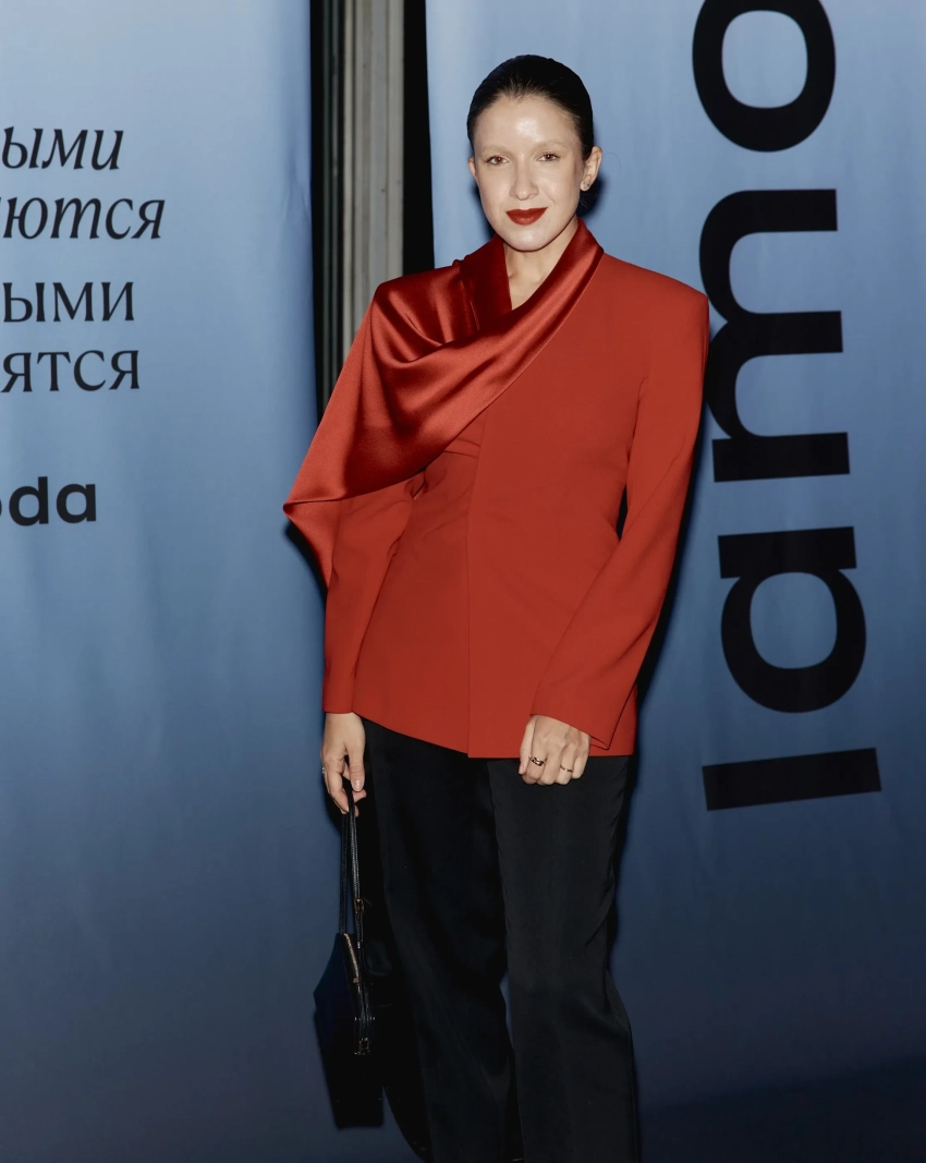 37-летняя экс-супруга Фёдора Бондарчука Паулина Андреева пришла на гала-вечер в топе-кейпе и брюках на высокой посадке, дополнив образ чёрными перчатками. 43-летняя Ксения Собчак позировала в платье с мехом и сумкой Hermes, а 27-летняя Алеся Кафельникова надела красное платье-комбинацию и колготки в сетку. Ещё одна бывшая жена Бондарчука, 56-летняя Светлана Бондарчук, выгуляла на мероприятии леопардовый топ с широкими джинсами.
