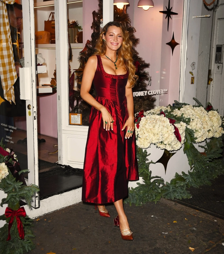 Блейк Лайвли посетила открытие праздничного поп-апа в Нью-Йорке, где представила коллаборацию своего бьюти-бренда Blake Brown с маркой Stoney Clover Lane.
