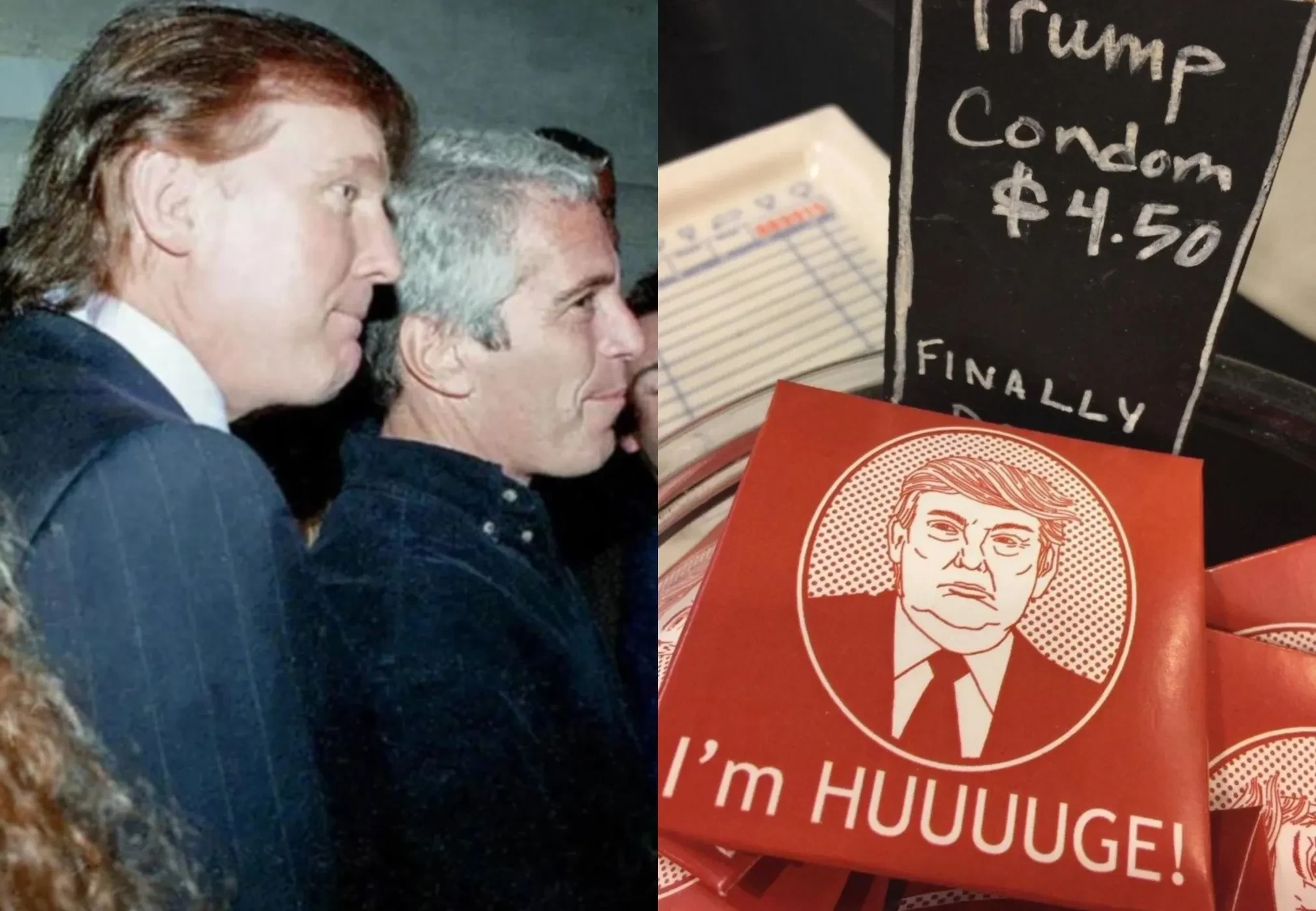 На новых снимках Трамп позирует в окружении женщин, лица которых скрыты. Также в подборке есть совместное фото президента и Эпштейна на неком светском мероприятии. Однако наибольший резонанс вызвало фото миски с презервативами, на упаковках которых изображён Трамп с подписью: "Я огромный!".