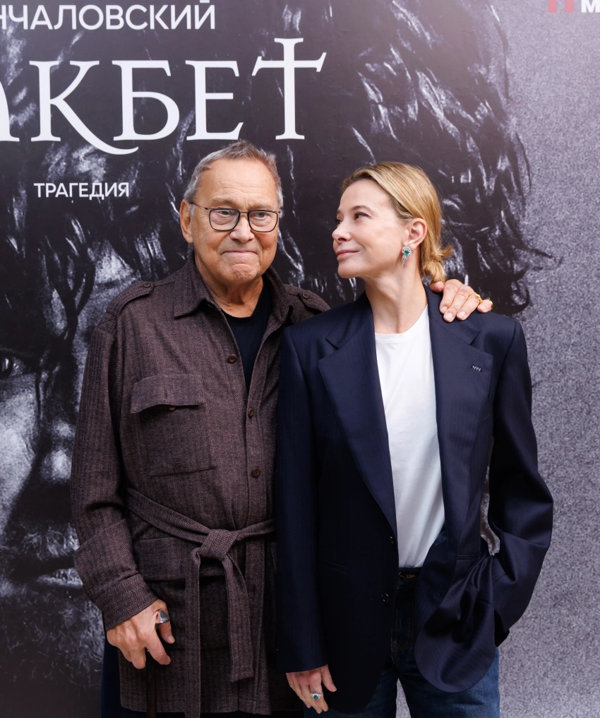 Андрей Кончаловский и Юлия ВысоцкаяАндрей Кончаловский и Юлия ВысоцкаяИрина ГорбачёваПелагеяЕлизавета БазыкинаПолина АскериИрина Голомаздина с подругойЕкатерина МухинаЯнина СтудилинаАнтон и Дарья ЗлатопольскиеМаша ФёдороваИгорь Миркурбанов и Мария АнтиппАлександра РевенкоЭтери ЛевиеваАлександр ЯцкоАлександр ПерепёлкинАндрей ФоминНа премьере спектакля 88-летнего Андрея Кончаловского ожидаемо собрался полный зал зрителей, а сам режиссёр наблюдал за игрой своей супруги и музы с балкона. В сети уже обсудили саму постановку и игру Юлии Высоцкой — большинство зрителей остались довольны "Макбетом".