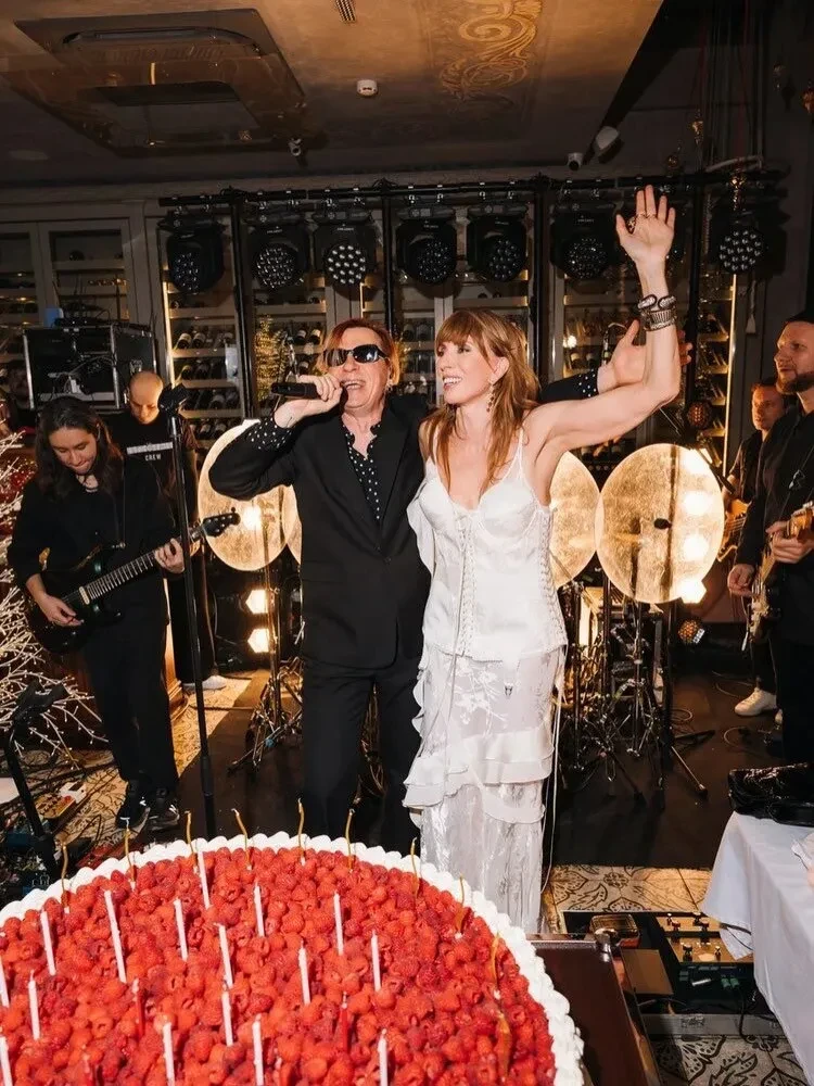 На новых фото Бондарчук позирует в прозрачном чёрном платье (которое она потом сменила на белый наряд) рядом с сыном Сергеем, мужем Сергеем Харченко и многочисленными друзьями. Поздравить ведущую пришла 60-летняя Ольга Слуцкер, которая, как именинница и Ксения Собчак, надела чёрный прозрачный наряд, а Марина Руднева позировала в меховом топе. Среди гостей также были актёр Евгений Сангаджиев, ресторатор Александр Соркин, музыкант Дмитрий Ашман и другие.