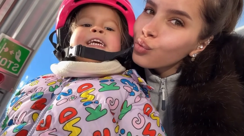 Вместе с Карпуть в Куршевеле отдыхает её старшая дочь Соня от супруга Павла Тё. Мать и дочь тоже сфотографировались на склоне в лыжных костюмах и с бокалами.