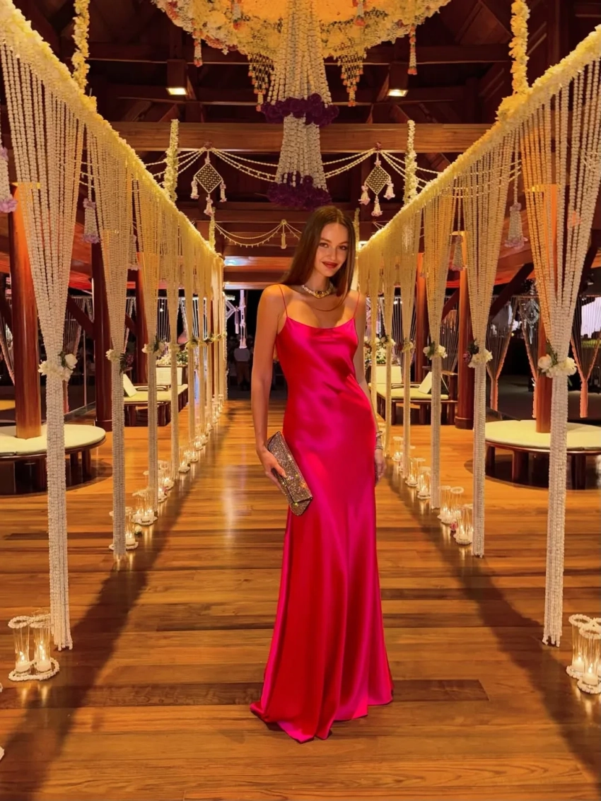 На снимках Романова в длинном розовом платье обнимает Доронина на фоне фейерверков, делает селфи с ним и друзьями, а также просто позирует одна и с подругами. "Вот и наступил 2026 год", — подписала фото модель.