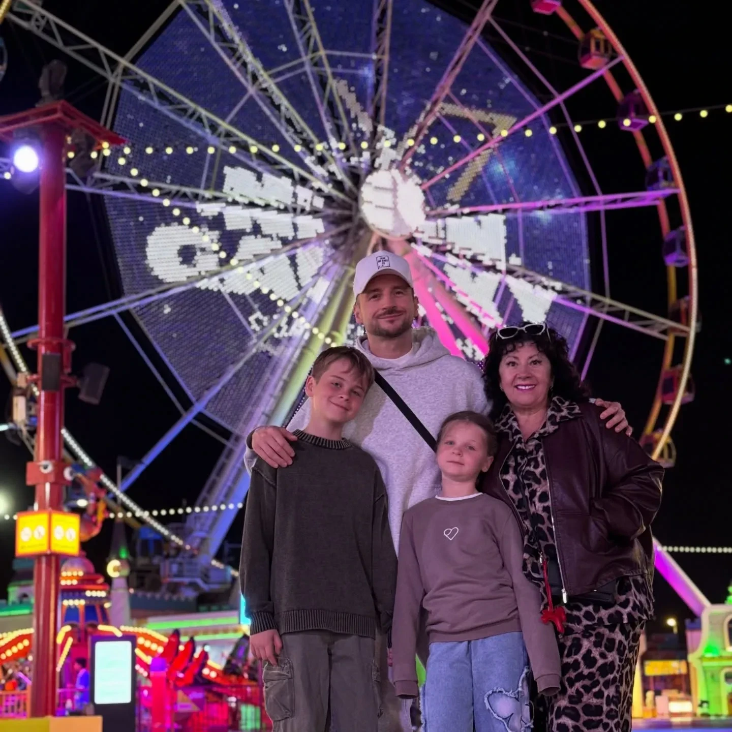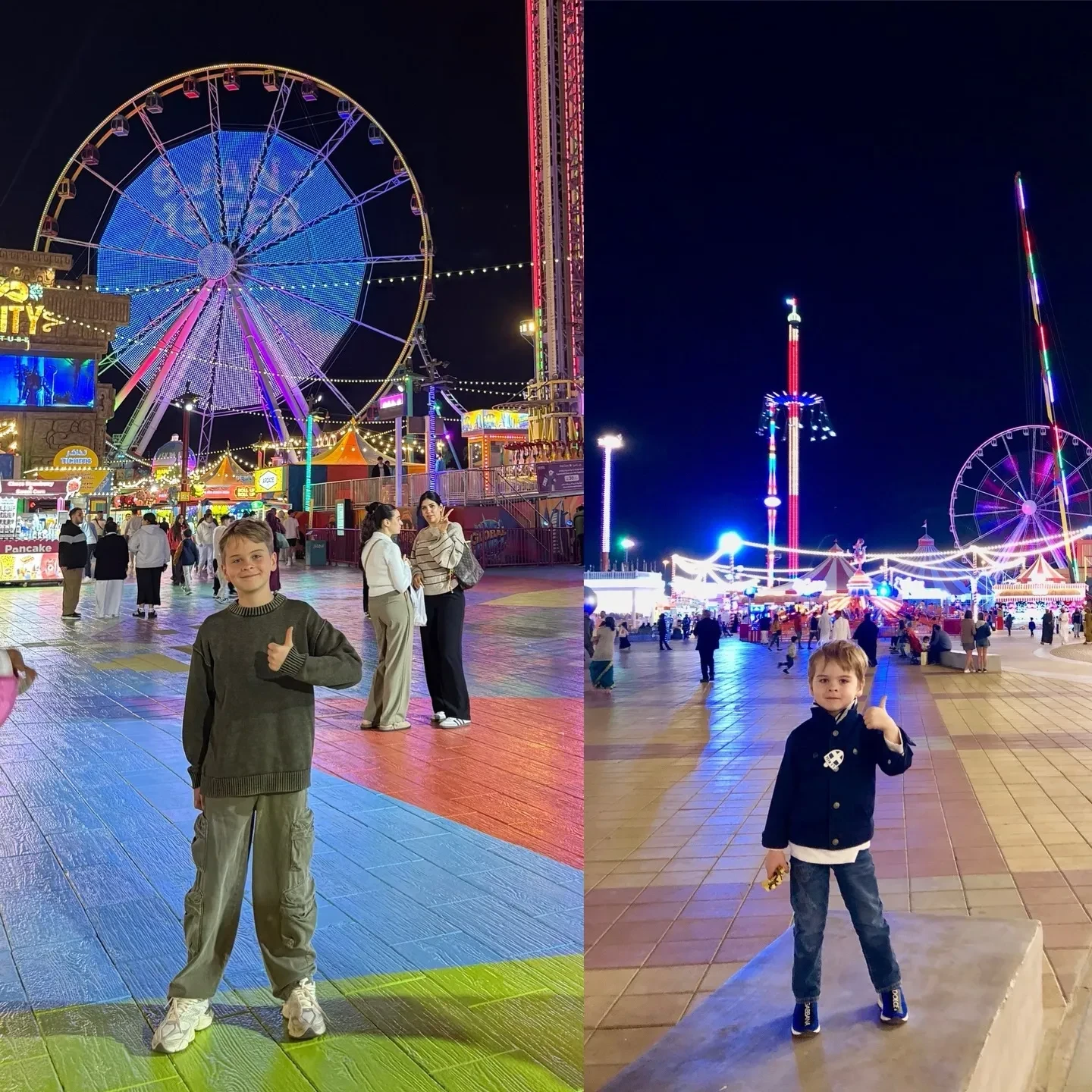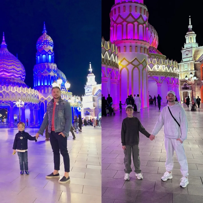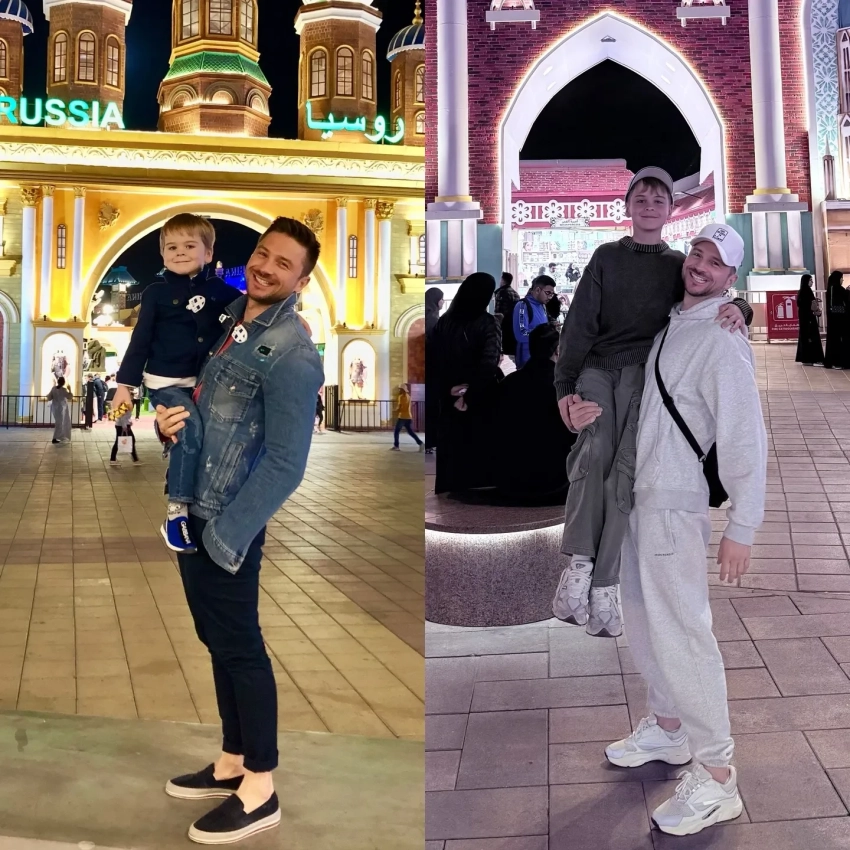 Сергей Лазарев с детьмиСергей также рассказал, что вместе с ними отдыхает его мать Валентина. Вся семья посетила парк аттракционов Global Village, в котором артист отдыхал с сыном в 2019 году. Он показал, как вырос Никита, приложив коллаж из архивных и новых фото, сделанных в одинаковых локациях.