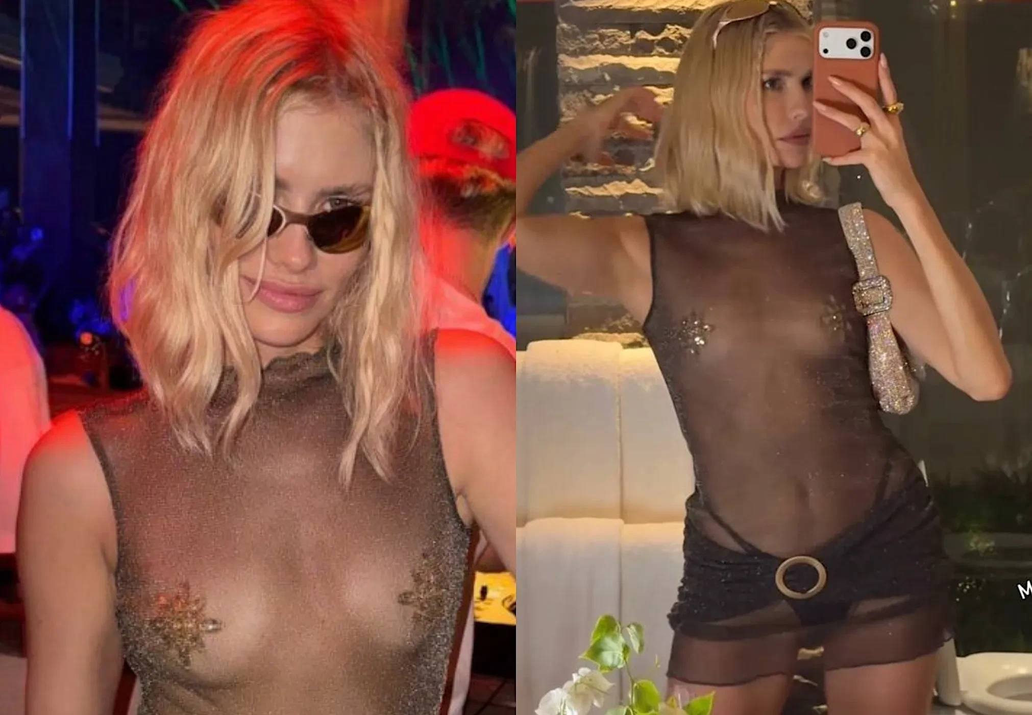 Перминова отправилась на местную вечеринку в полностью прозрачном мини-платье, под которым были видны лишь трусы и накладки на грудь. "Мамин вечер", — подписала фото бывшая девушка миллиардера.