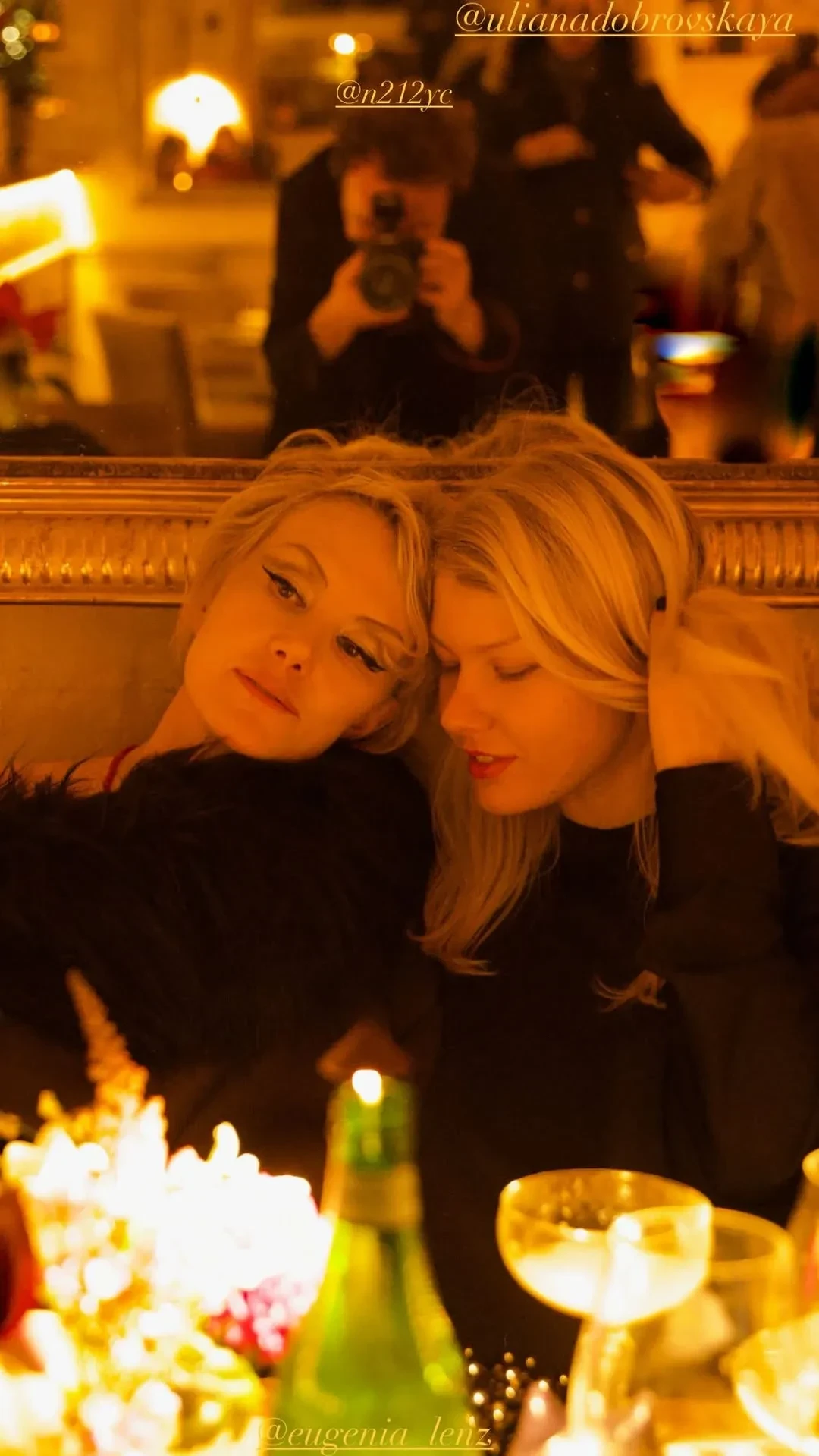 Рената Литвинова поделилась в инстаграме* новыми снимками с 24-летней дочерью Ульяной Добровской. На фото авторства популярного фотографа Никиты Чёрного мать и дочь позируют в ресторане, прислонившись друг к другу головами.