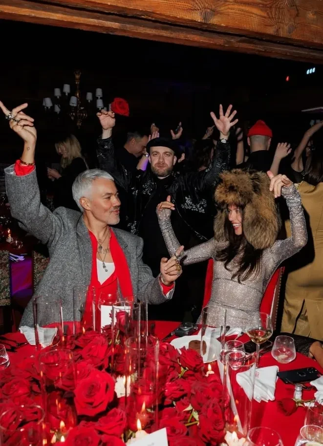 Компания звёзд — Ксения Собчак, Оксана Самойлова, Елена Перминова и Тарас Романов, Александр Рогов, Ксения Шипилова и другие — посетили несколько вечеринок, мероприятие в бутике бренда и гала-ужин в честь дня рождения марки. На излюбленном миллиардерами горнолыжном курорте селебрити выгуляли модные образы: Ксения Собчак позировала в леопардовой шубе и брюках, а Елена Перминова пришла на обед в бюстгальтере с мехом, а на ужин — в комбинации и чулках.