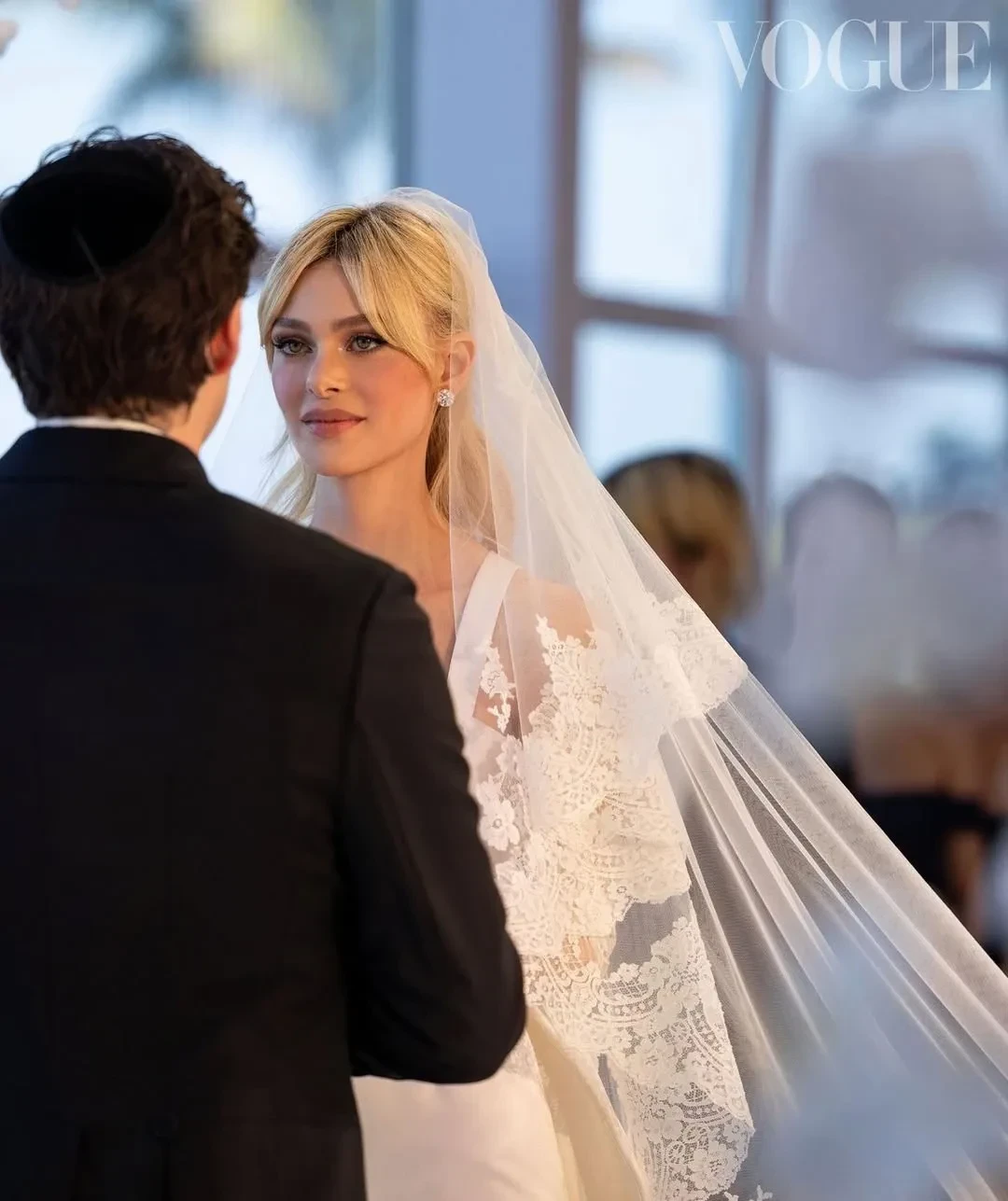 Лесли Фремер отмечала, что Пиччоли был первым, к кому обратилась Никола Пельтц для создания свадебного образа. Само платье, а также детали в виде перчаток, фаты и шлейфа с французским кружевом требовали кропотливой работы.