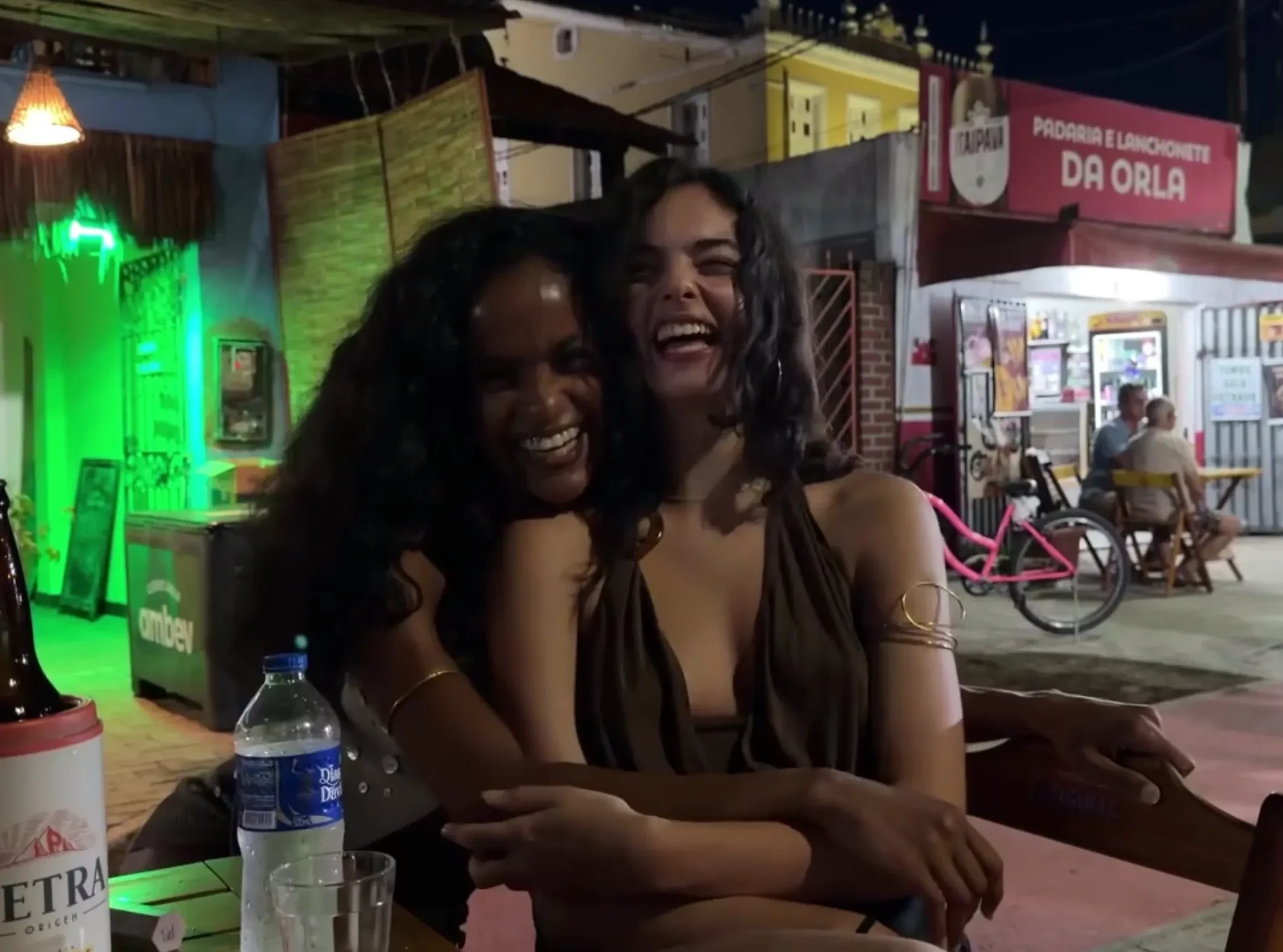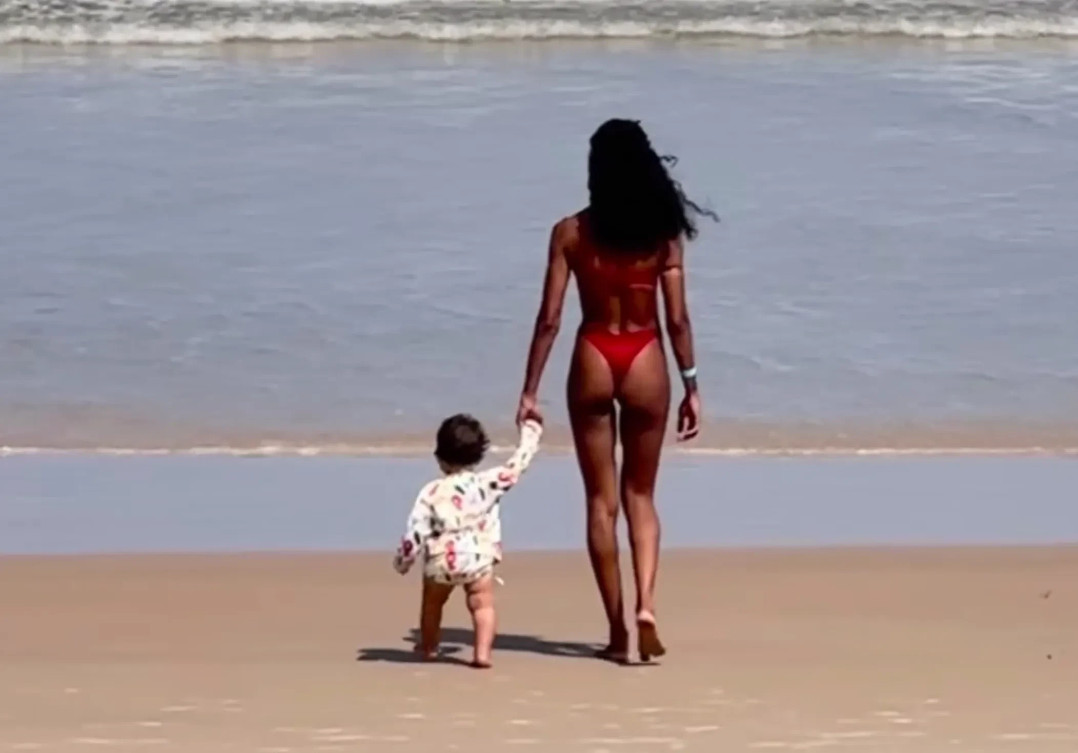 На снимках и видео, предположительно сделанных в Бразилии, Баптиста целуется с Касселем, обнимает 21-летнюю Деву Кассель в уличном кафе, позирует в бикини на пляже и гуляет по берегу с сыном.