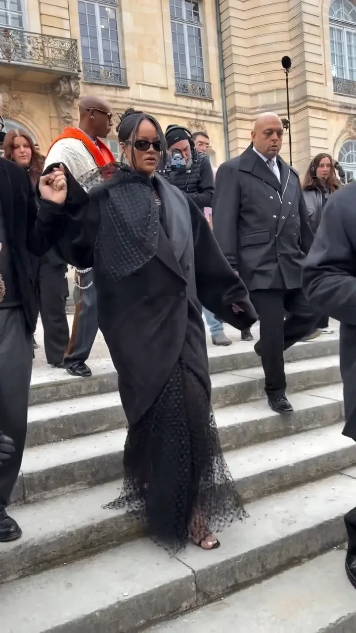 https://t.me/spletnik2006/4775637-летняя Рианна, которая недавно стала мамой в третий раз, выбрала для выхода в свет total black образ: на ней было кружевное платье и пальто "с мужского плеча". 43-летняя Наталья Водянова позировала рядом с супругом в комплекте из первой коллекции Андерсона, а 56-летняя Лоренс Санчес блистала в светло-сером платье-пальто с глубоким декольте и меховым воротником. 29-летняя актриса Аня Тейлор-Джой продемонстрировала образ из новой коллекции: бежевое пальто с массивными меховыми манжетами и цветастую шаль из шёлка. 21-летняя дочь Венсана Касселя и Моники Беллуччи Дева Кассель пришла в голубой приталенной рубашке и свободных бежевых брюках, а Ольга Карпуть, которая пару дней назад вместе со стилистом Александром Роговым посетила показ бренда Rick Owens, — в футуристичном платье с драпировкой, шляпе и перчатках.