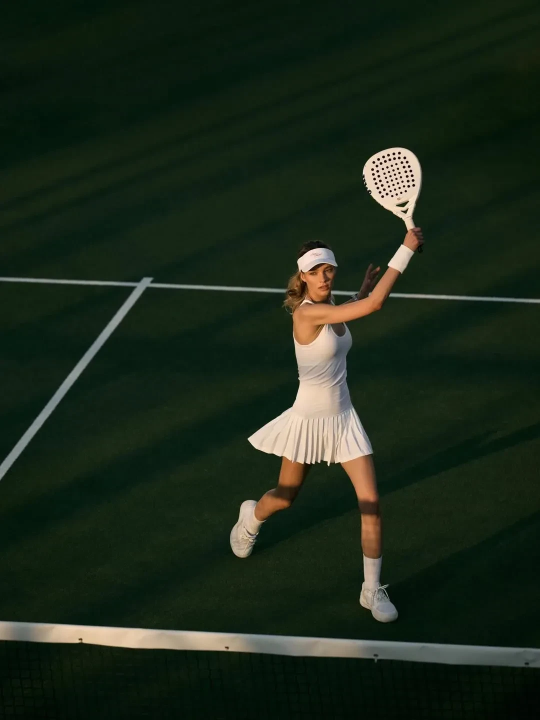 27-летняя Алеся Кафельникова снялась в новой фотосессии в Дубае. На снимках модель и дочь звезды тенниса Евгения Кафельникова позирует на корте в образах теннисистки в съёмке для падел-клуба Casa Padel.