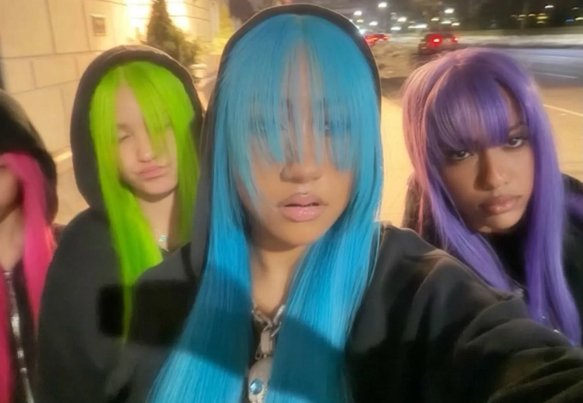 Норт Уэст надела вещи Alexander Wang: чёрную футболку и толстовку с принтом, ботинки с мехом, массивную цепь с черепом и дополнила образ длинными голубыми волосами. Подруги Уэст тоже примерили парики разных цветов. В таком виде подростки прогулялись по Нью-Йорку и встретились с дизайнером Александром Вангом. Его, кстати, пару лет назад "отменили" в модной индустрии после секс-скандала с обвинениями в домогательствах от моделей.