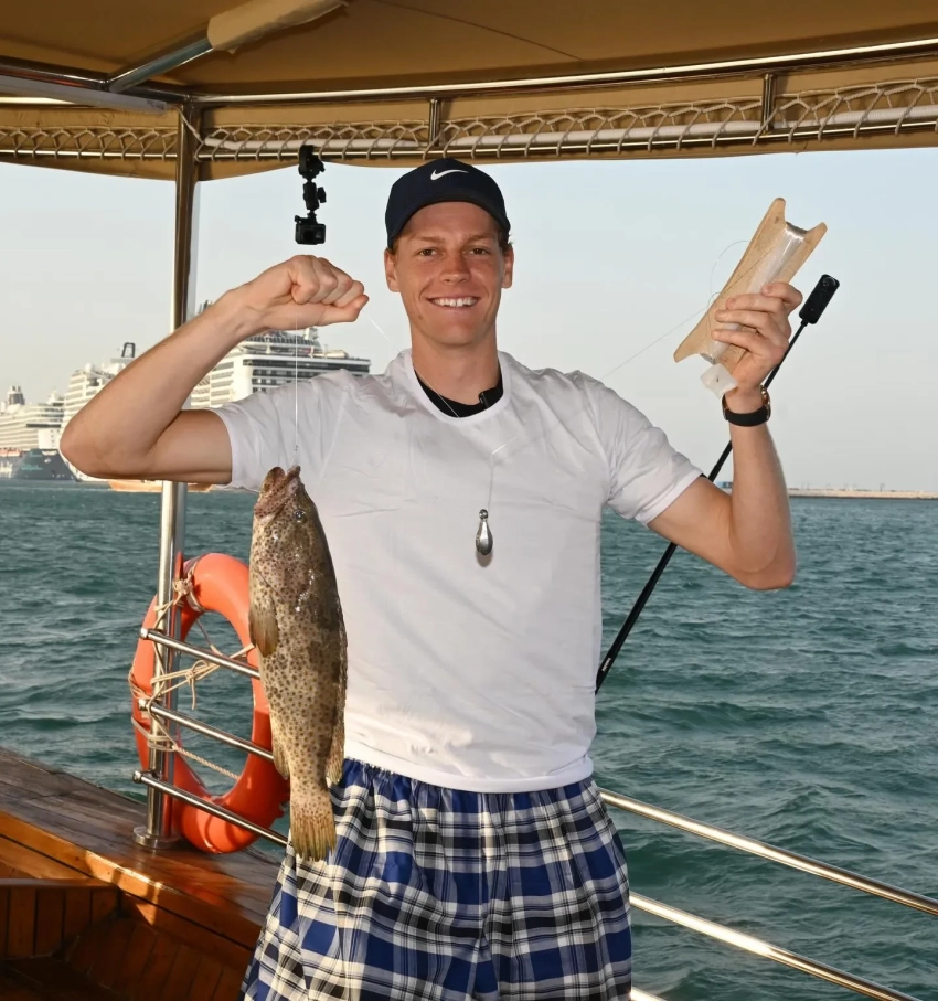 Андрей Рублёв, Даниил Медведев, Янник Синнер и Карлос Алькарас порыбачили вместе перед турниром в Дохе