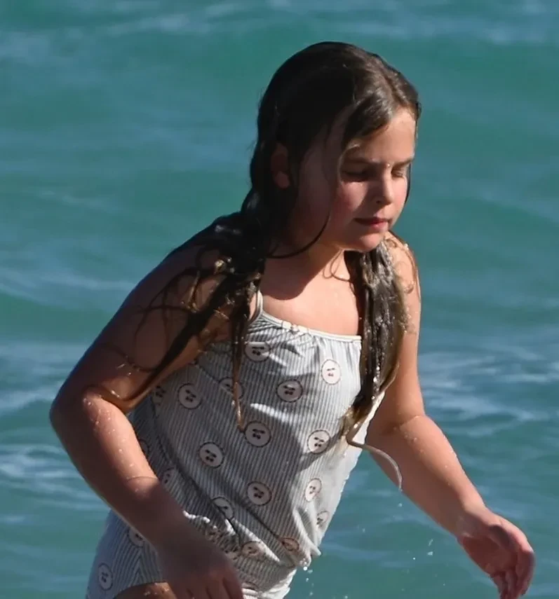 Ирину Шейк в бикини и мокрой рубашке засняли на пляже с дочерью
