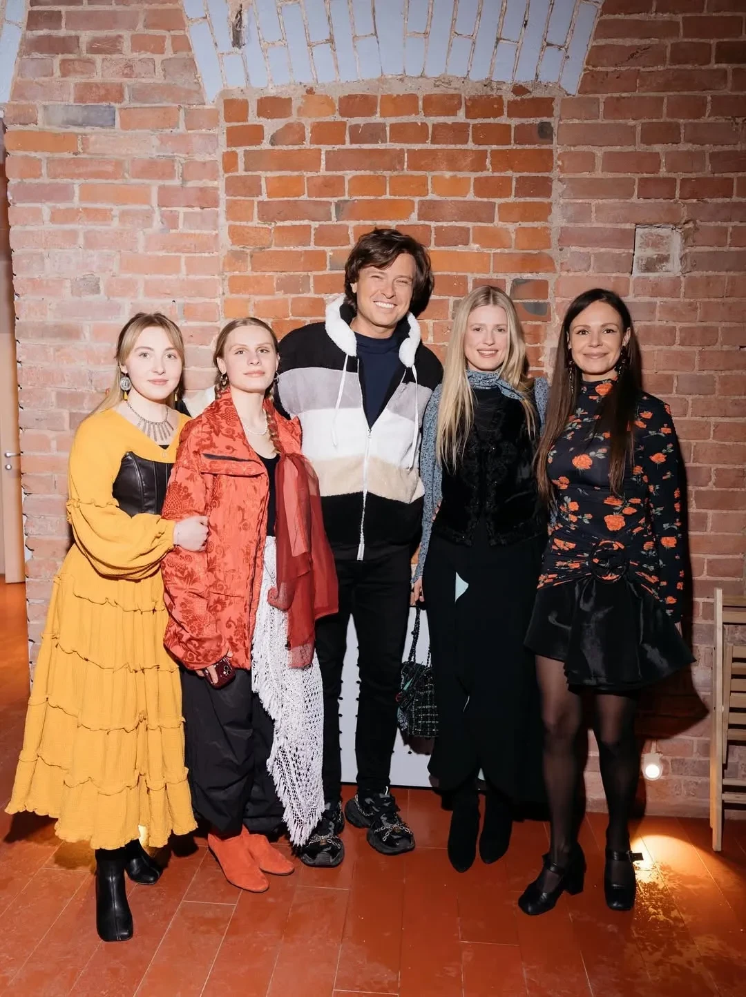 37-летняя актриса провела вечер с артистами Дома культуры, а среди гостей были Прохор Шаляпин, певица Тина Кузнецова и другие. Эрнст появилась на публике в длинной чёрной юбке, блузе с цветочным принтом и жилете.