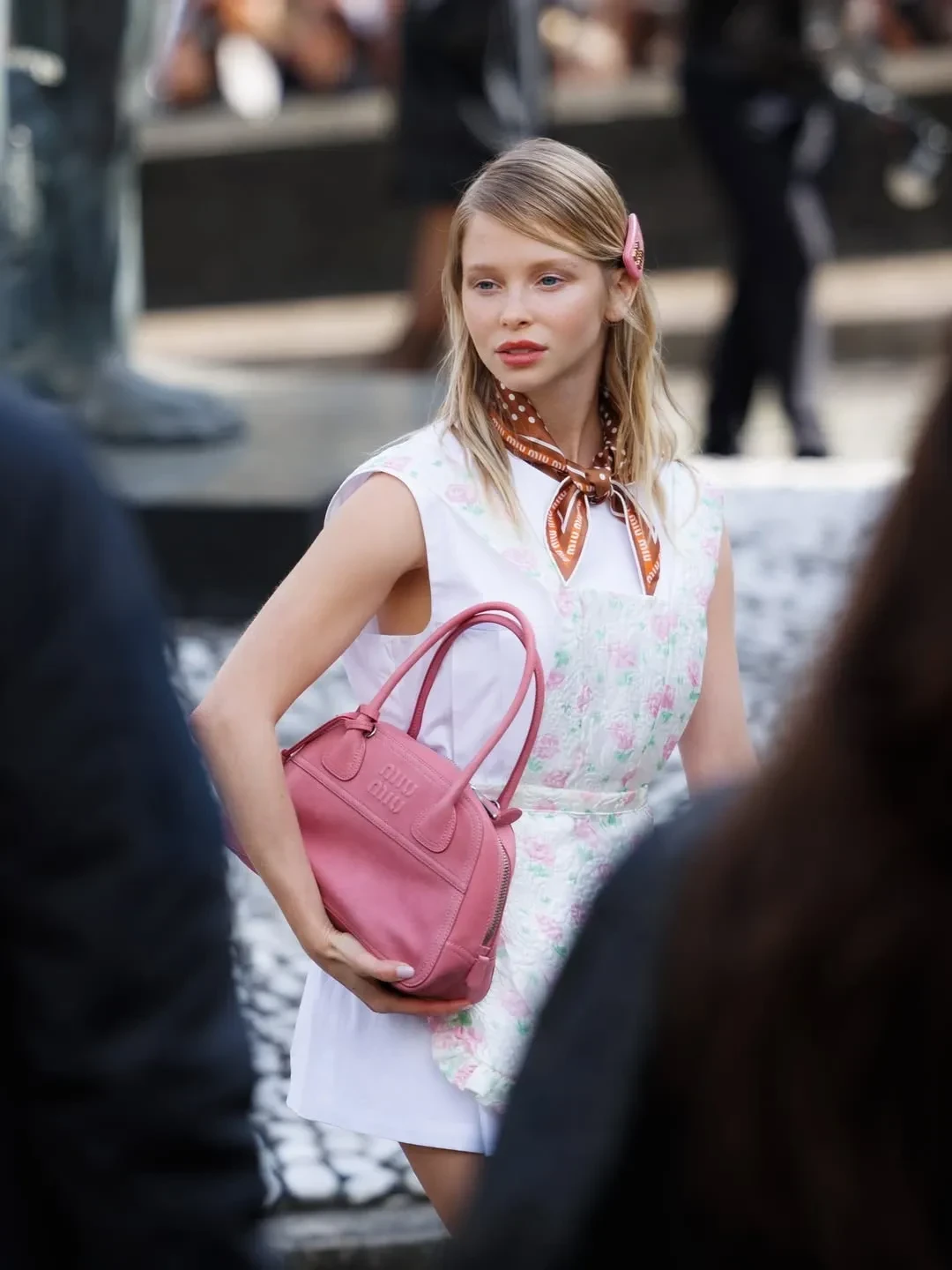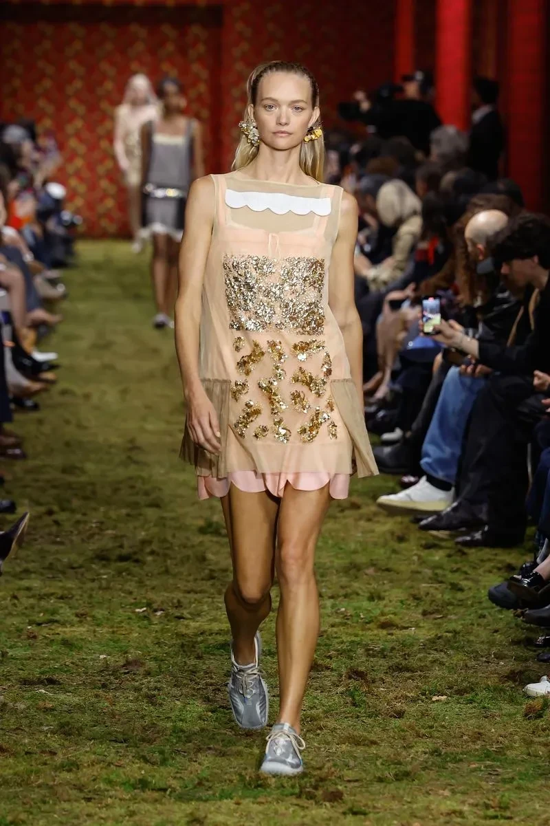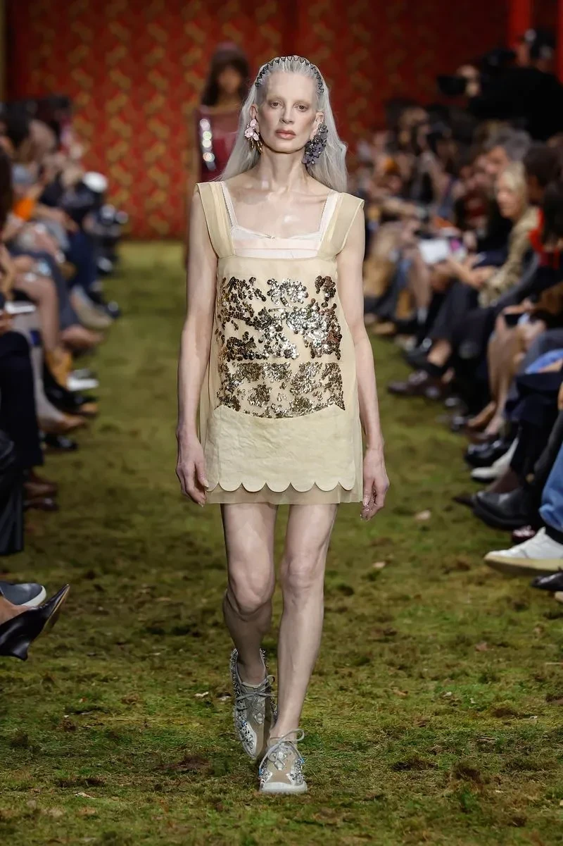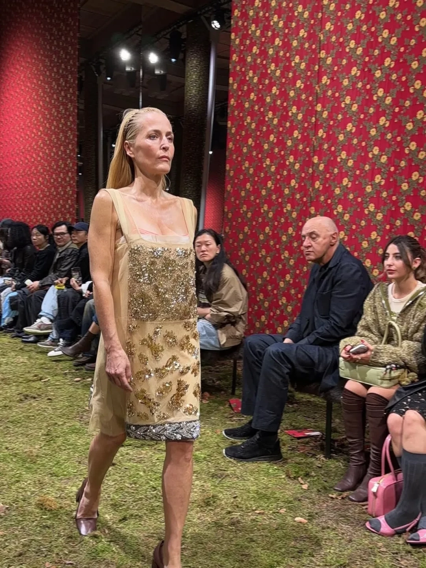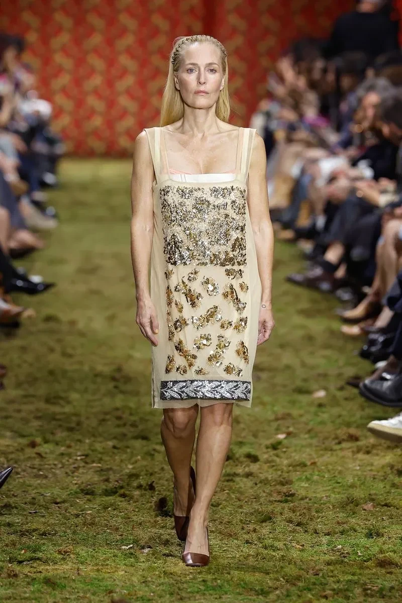Палома ЭльсессерПо подиуму на показе новой коллекции бренда Миуччи Прады Miu Miu по традиции прошлись несколько звёзд. Закрыла шоу 57-летняя Джиллиан Андерсон, а 51-летняя Хлоя Севиньи вышла на подиум для Miu Miu впервые за 30 лет (она участвовала в шоу и была лицом бренда в 1996 году). Также в показе приняли участие супермодели Джемма Уорд и Кристен Макменами.