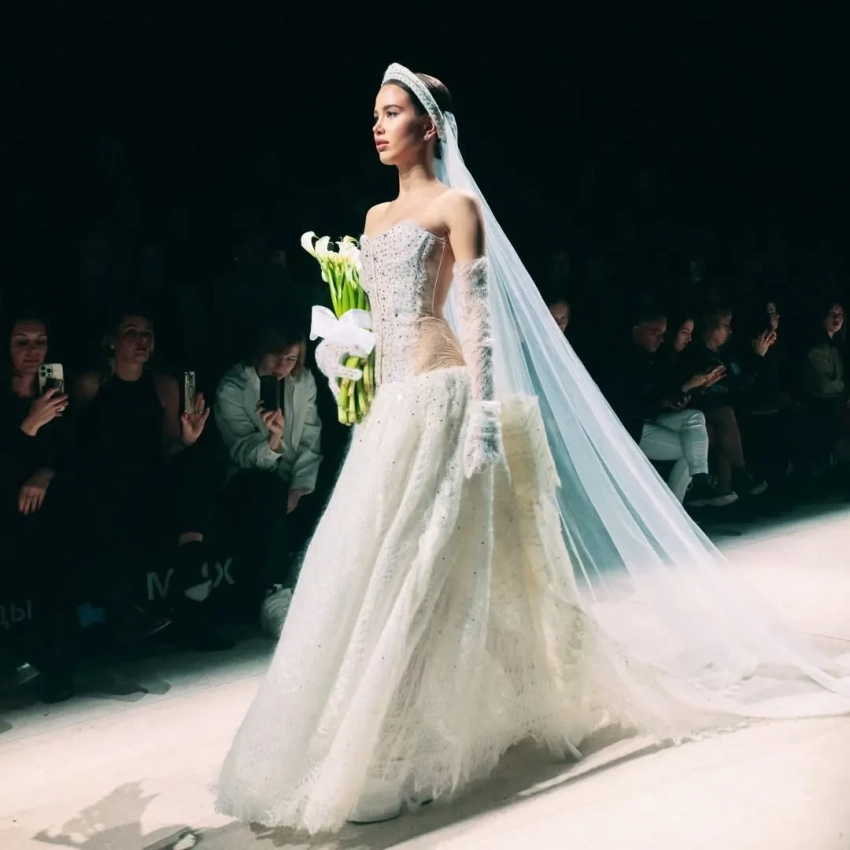 Аврора Киба в свадебном платье и внучка экс-президента Узбекистана Марьям Тилляева вышли на подиум на показе в Москве