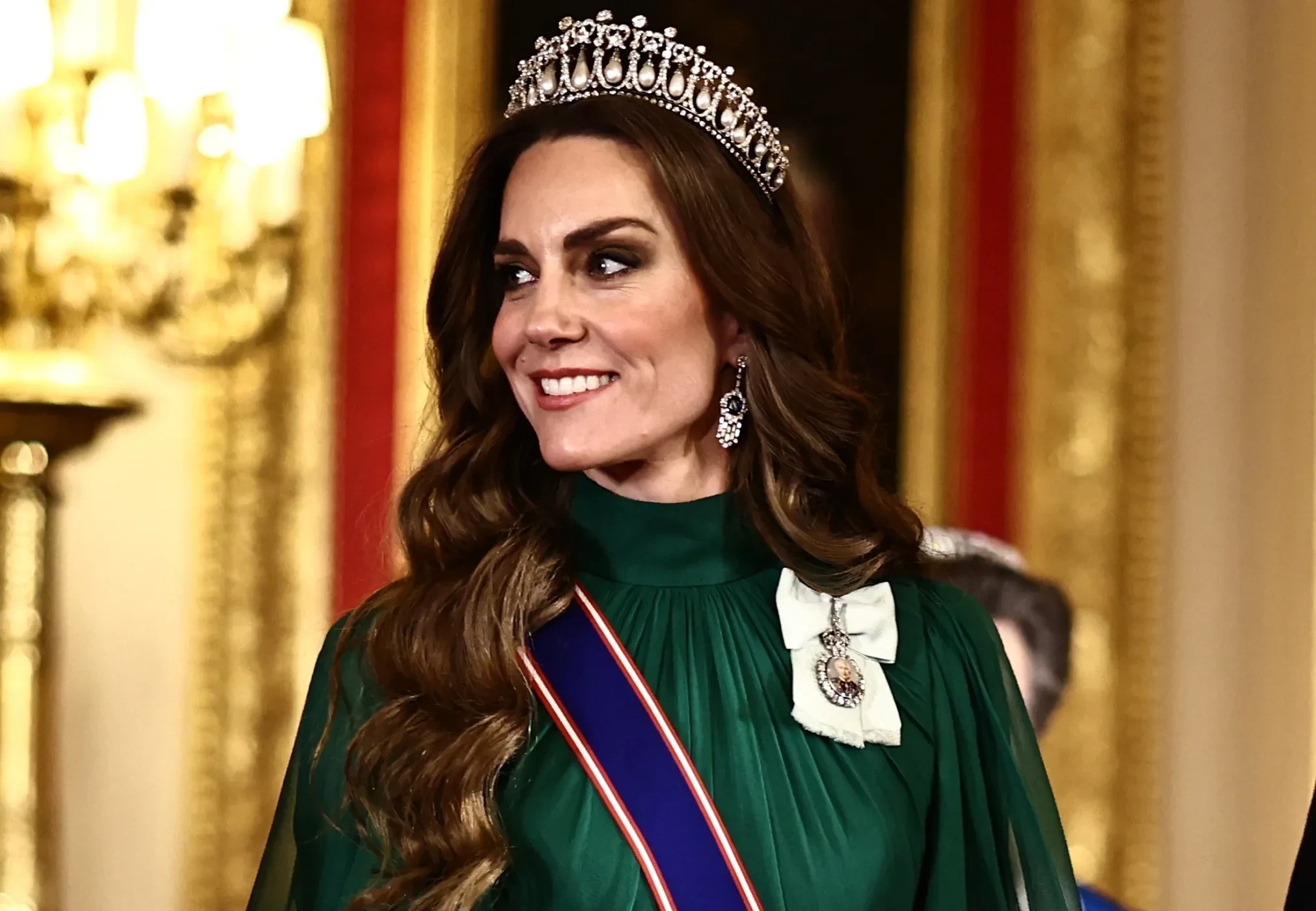 44-летняя Миддлтон появилась на банкете в закрытом платье Andrew Gn изумрудного цвета, который, предположительно, был выбран в качестве дани уважения национальному флагу Нигерии. Образ герцогини завершала её любимая тиара "Узелки любви", сверкающий клатч и серьги из шкатулки покойной Елизаветы II. 43-летний принц Уильям, как и другие мужчины, согласно королевскому этикету, был в классическом чёрном фраке с белой бабочкой.
