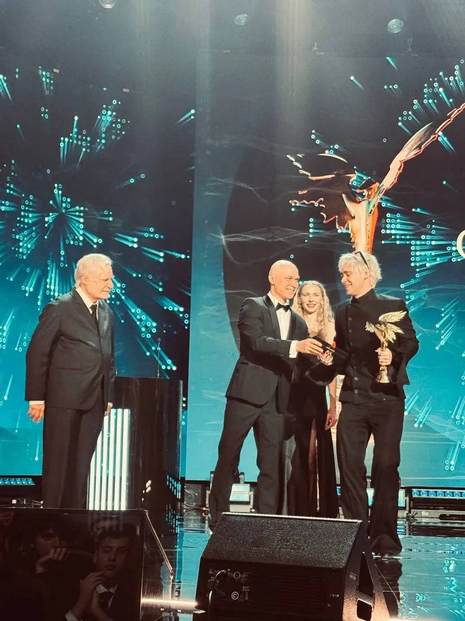 Юлия СнигирьЮлия Снигирь и Евгений ЦыгановЕвгений Цыганов после красной дорожки перевоплотился в своего персонажа из фильма "Батя 2. Дед" и вместе с 33-летним Юрой Борисовым и 35-летней Анной Шевчук вручил премию режиссёру Феликсу Уварову.