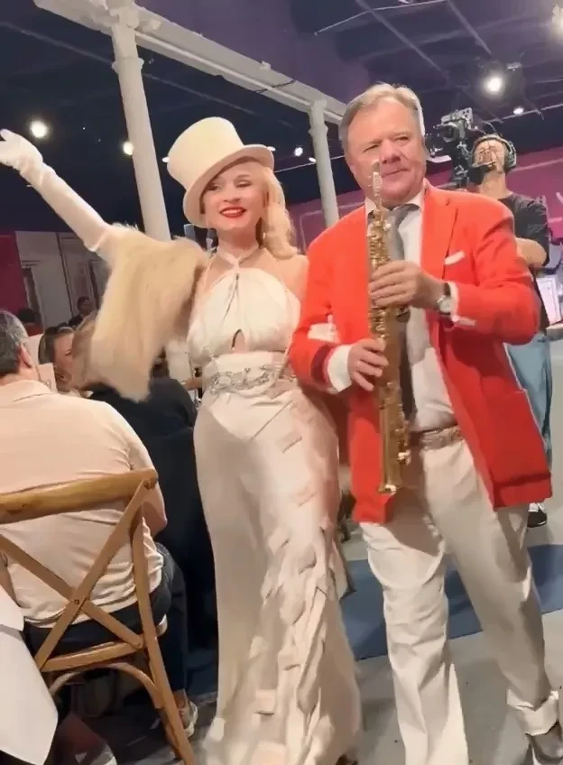 Яна РудковскаяЕвгений Плющенко с сыномЯна РудковскаяЕвгений Плющенко с сыномСреди участников показа также были теннисистка Светлана Кузнецова, которая продефилировала в чёрном "рокерском" наряде в компании своего питомца — американского булли по кличке Дуня, и именитый саксофонист Игорь Бутман с супругой Анной.