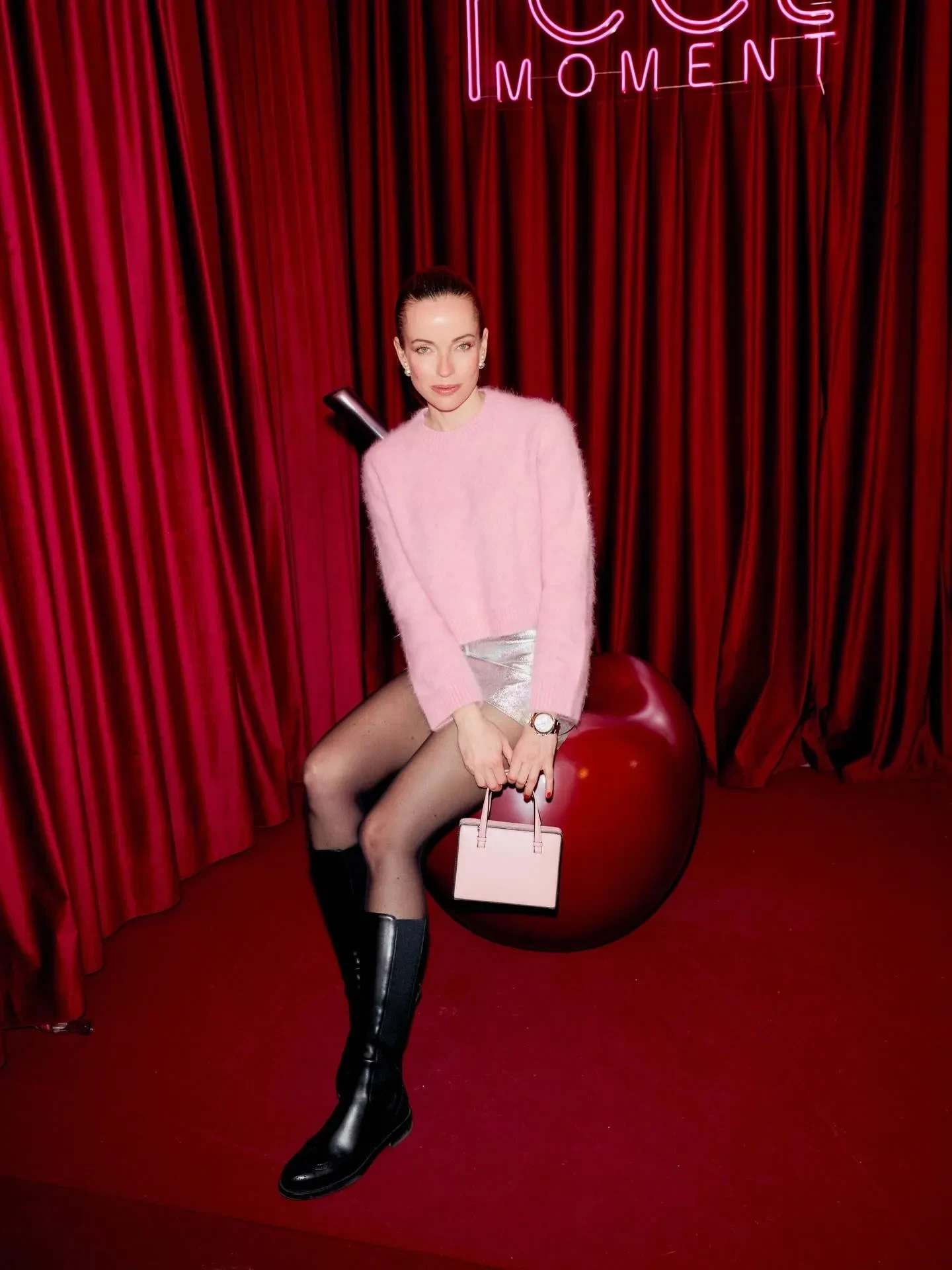 Гости в соответствии с дресс-кодом мероприятия выбрали образы в стиле pink glamour: 30-летняя Олеся Иванченко, ставшая лицом марки, выбрала костюм с мини-юбкой, а 31-летняя Саша Бортич появилась в приталенной футболке и белой юбке, дополнив наряд высокими ботфортами. 33-летняя Карина Нигай отдала предпочтение кроп-топу с длинным рукавом и рваным джинсам baggy-кроя.