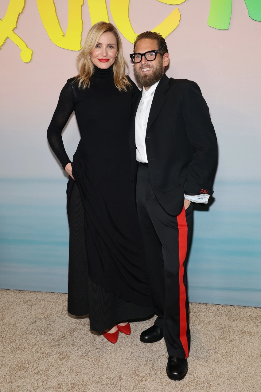 53-летняя Кэмерон Диас позировала на дорожке в чёрном платье макси и красных туфлях в компании Джоны Хилла, а 61-летний Киану Ривз пришёл со своей возлюбленной Александрой Грант.