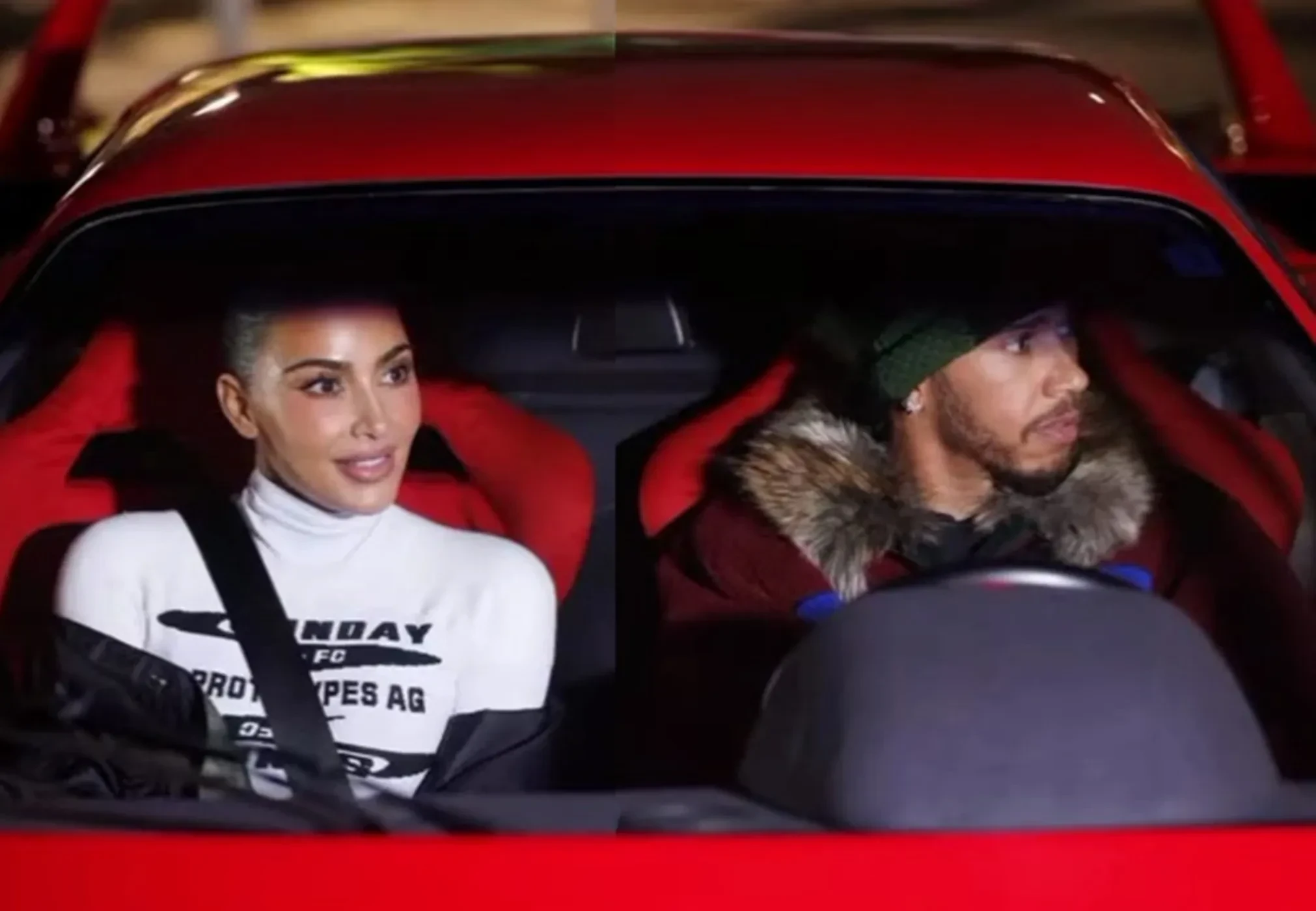 В ролике 41-летний гонщик "Формулы-1" дрифтует на редкой красной Ferrari F40 с 45-летней Кардашьян на пассажирском кресле. В конце видео камера приближается к Ким, которая смеётся и говорит: "Это безумие!".