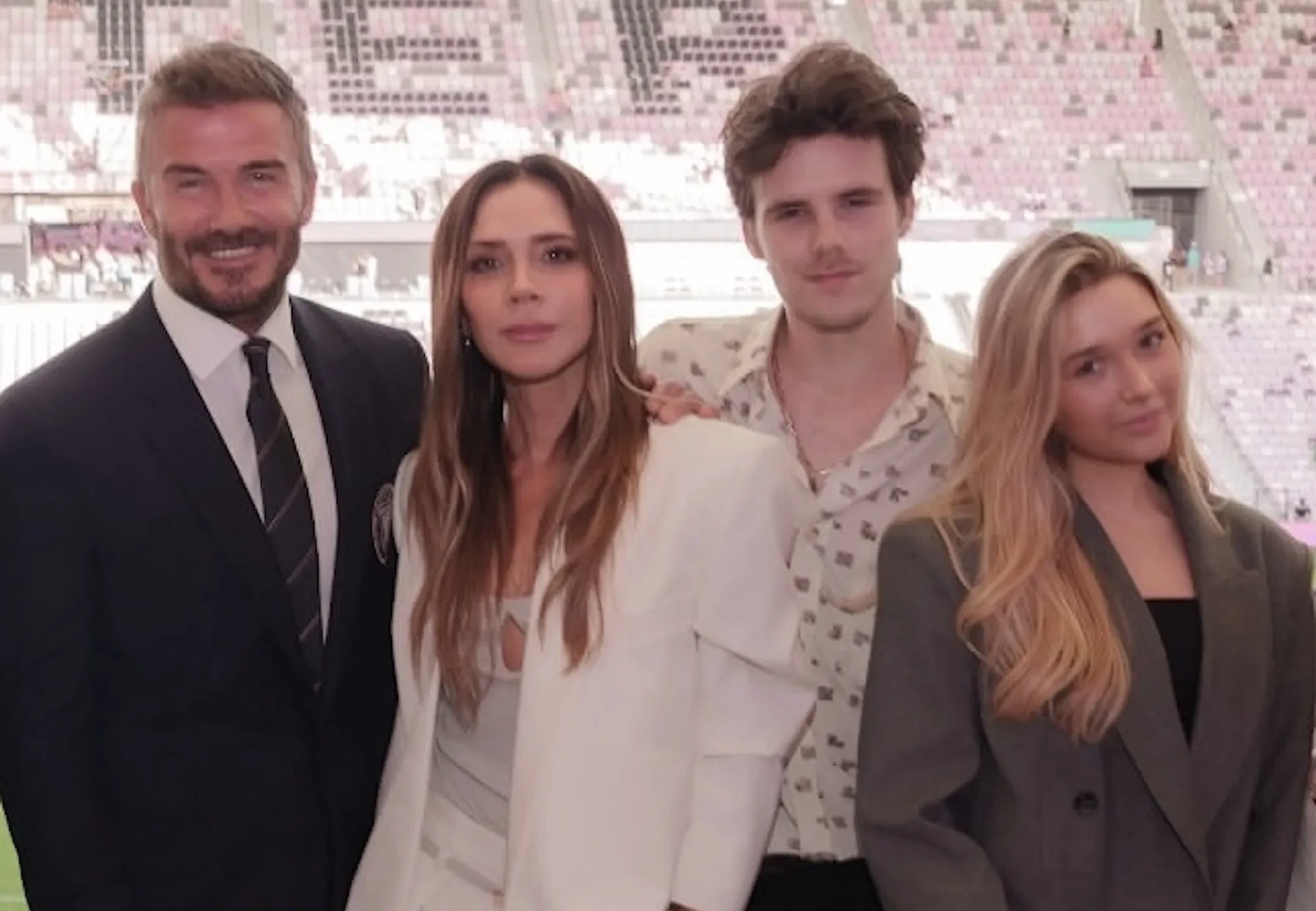 Виктория Бекхэм вместе с тремя детьми пришла поддержать мужа Дэвида Бекхэма на открытии нового стадиона его футбольного клуба в Майами. Семья вместе позировала для фото — без старшего сына Бруклина, который не общается с ними.