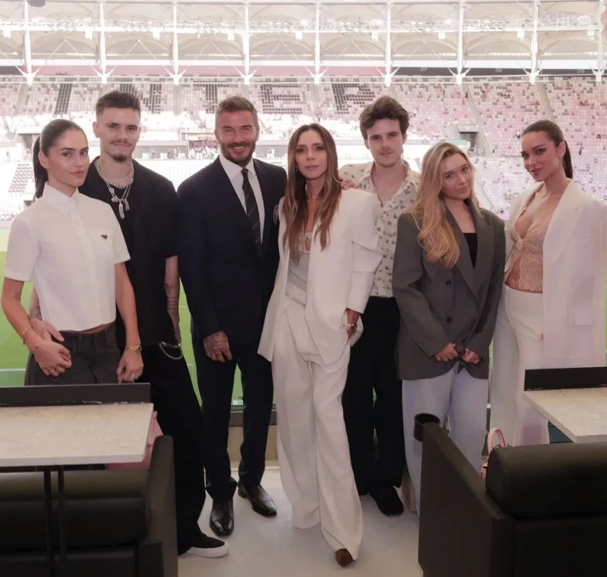 "Особый вечер в кругу друзей и родных на нашем новом стадионе. Спасибо моей прекрасной семье за поддержку на этом пути", — написал Дэвид Бекхэм в соцсетях. На групповом снимке футболист позирует с женой Викторией, дочерью Харпер, сыновьями Ромео и Крузом и их девушками — Ким Тернбулл и Джеки Апостел. На мероприятии выступил друг семьи и бывший муж Дженнифер Лопес Марк Энтони.