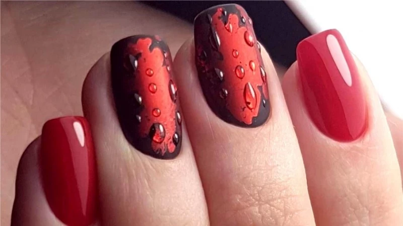 Красный цвет — это неотъемлемая часть Дня Святого Валентина, и почему бы не добавить его в маникюр? Но классика в виде глянцевого красного лака уже немного надоела. Попробуйте желейный маникюр, который напоминает прозрачный мармелад или клубничный джем. Для яркости можно дополнить дизайн молочными мини-сердечками.