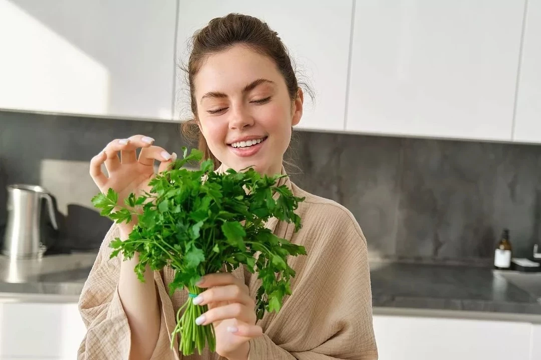 Петрушка – это настоящая кладезь витаминов, таких как С и группы В. Она положительно влияет на работу сердечно-сосудистой и нервной системы, укрепляет иммунитет и помогает усваивать витамины Д и кальций. Лютеин и бета-каротин, содержащиеся в петрушке, способствуют улучшению зрения.