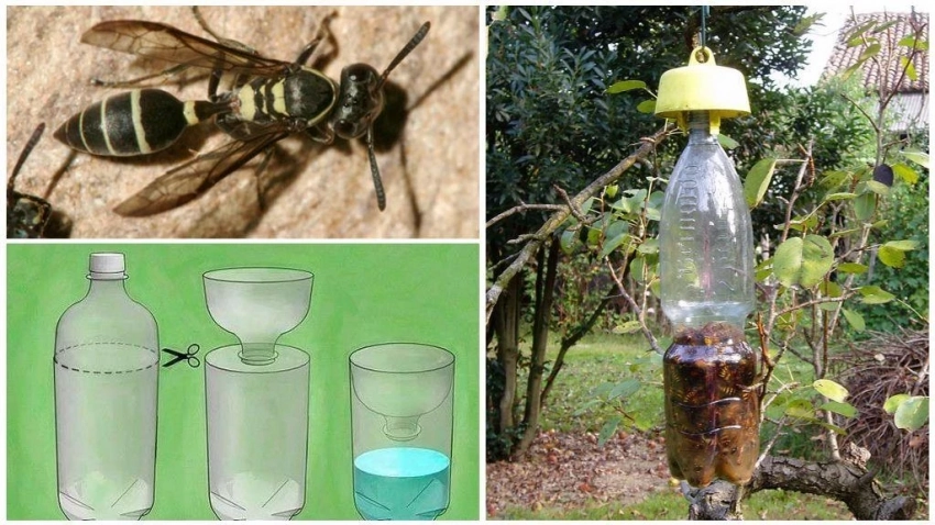 Самодельные ловушки — один из самых бюджетных и действенных способов. Возьмите пластиковую бутылку, отрежьте верхнюю часть и вставьте её горлышком вниз в нижнюю часть. Внутрь налейте забродивший сок, пиво или квас. Аромат привлечёт ос, и они утонут в жидкости. Для усиления эффекта можно добавить немного инсектицида без запаха.