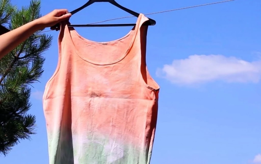 Погрузи футболку в раствор на 20–90 минут — в зависимости от желаемой насыщенности.
