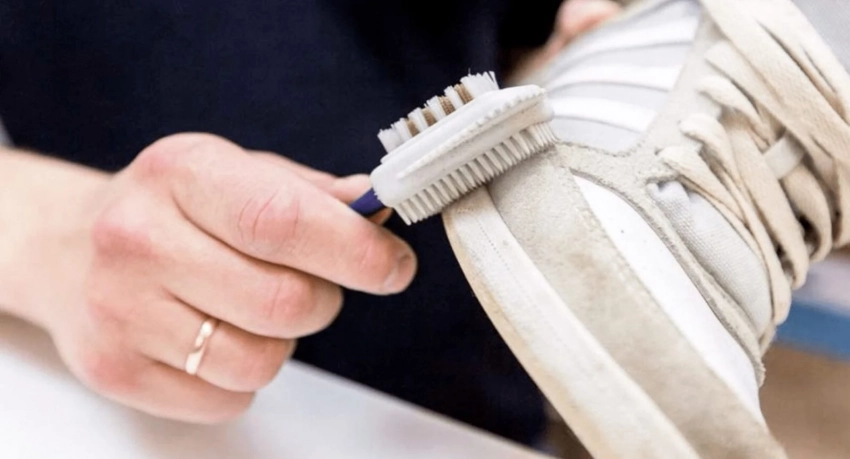- сначала удалите грязь сухой щеткой с мягкой щетиной;