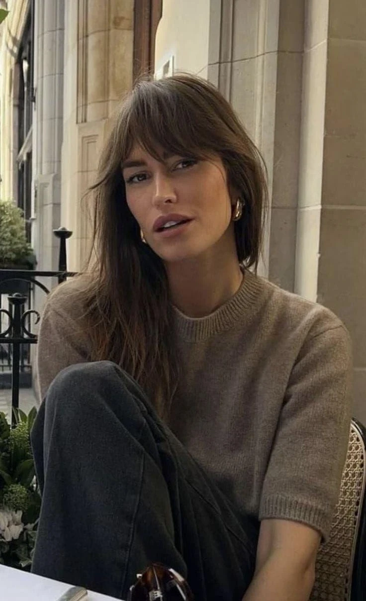 Французская челка — это про настроение, а не про форму. Легкие пряди, отсутствие четкой линии среза и мягкое обрамление лица создают эффект «парижской небрежности».