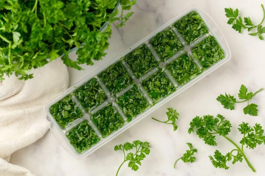 Измельчите зелень, разложите по формочкам для льда и залейте оливковым маслом. После заморозки у вас получатся ароматные кубики, которые можно сразу бросать в сковороду или кастрюлю. Это не только удобно, но и значительно усиливает вкус блюда.