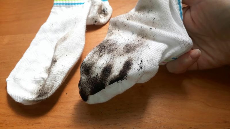 Нашатырный спирт. Разведите столовую ложку нашатырного спирта в 5 литрах воды. После обработки самых загрязненных мест замочите носки в этом растворе до 6 часов.