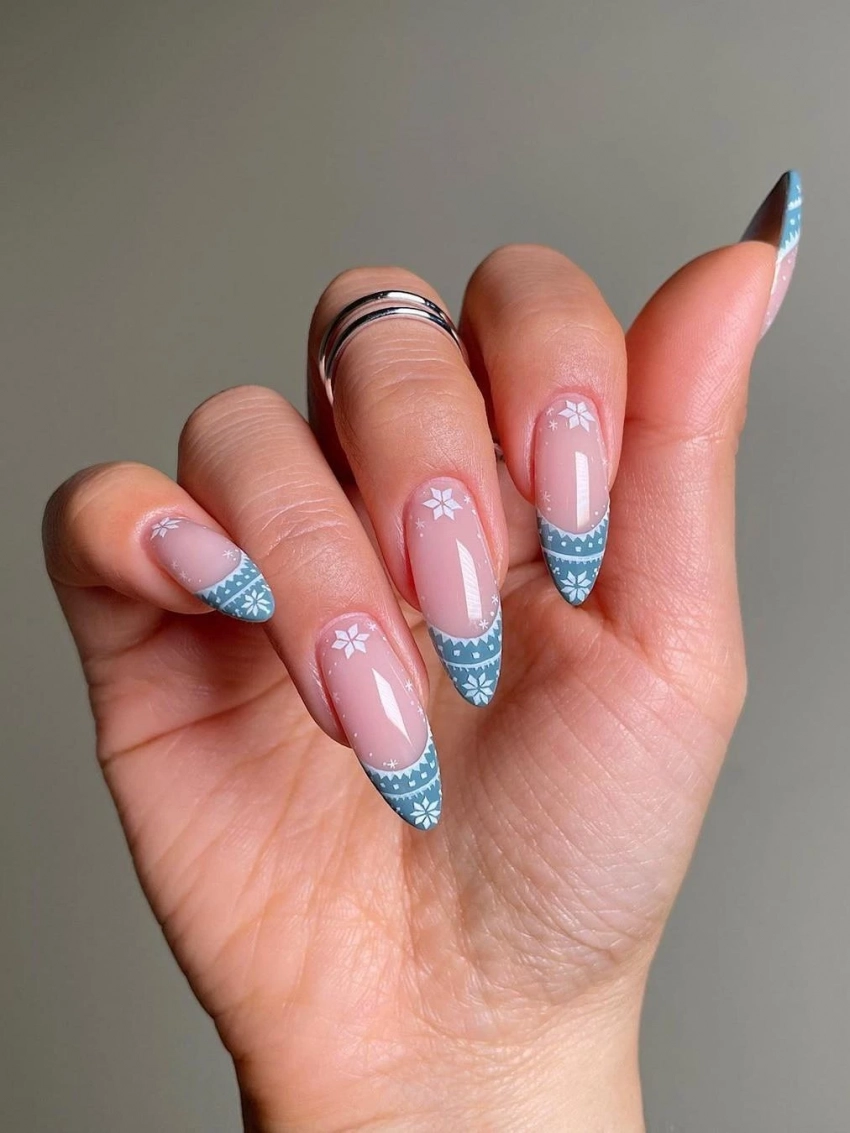 Маникюр «ледяной перламутр» создаст эффект заснеженных ногтей, переливающихся на свету. Обилие перламутровых частичек придаст ногтям холодный, но очаровательный вид, идеально подходящий для зимних праздников.