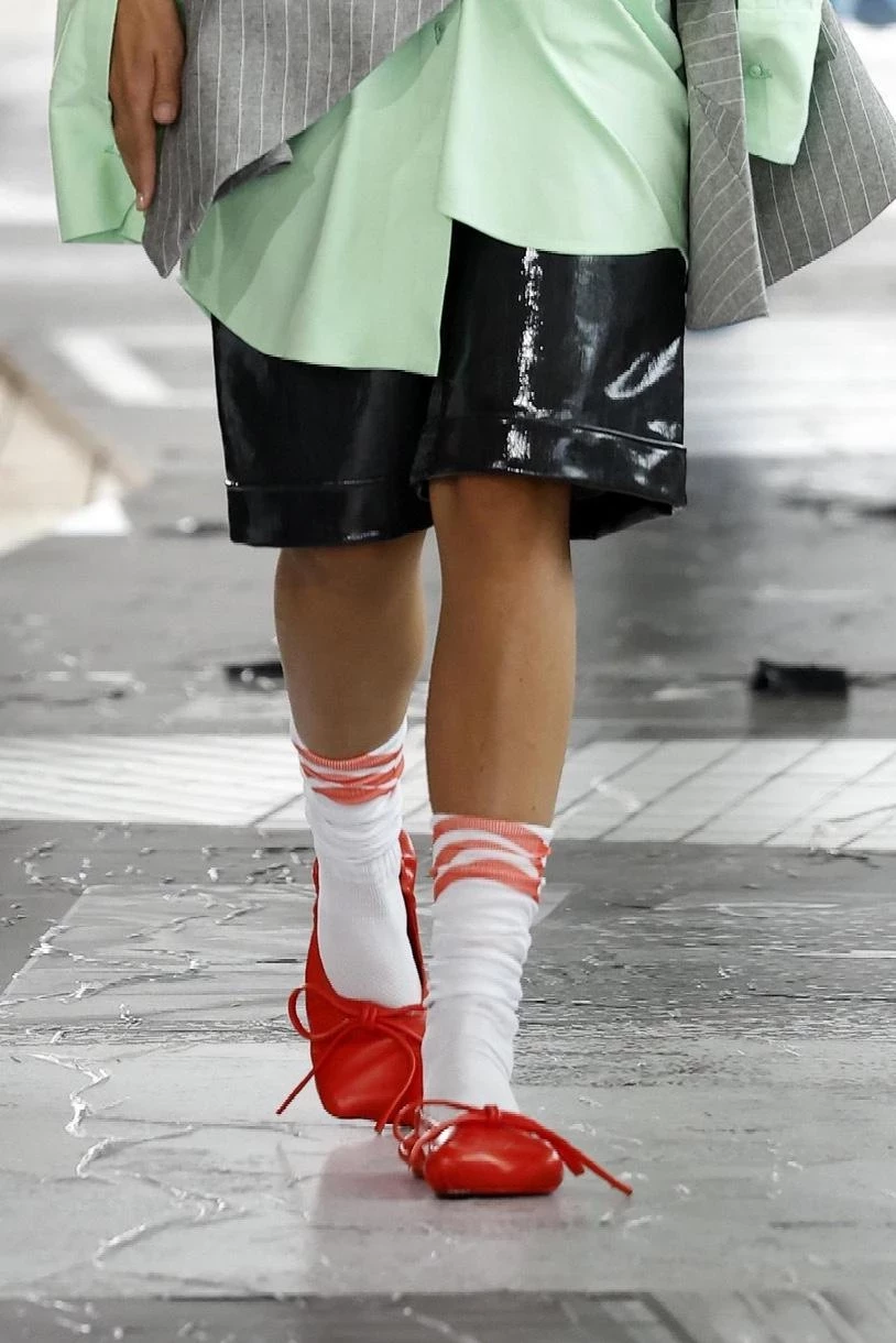 Знаменитые красные туфельки из «Волшебника страны Оз» стали вдохновением для дизайнеров. Simone Rocha представил сверкающие балетки, которые идеально вписываются в тренд mix&match: их можно носить как с джинсами, так и с романтичными платьями.