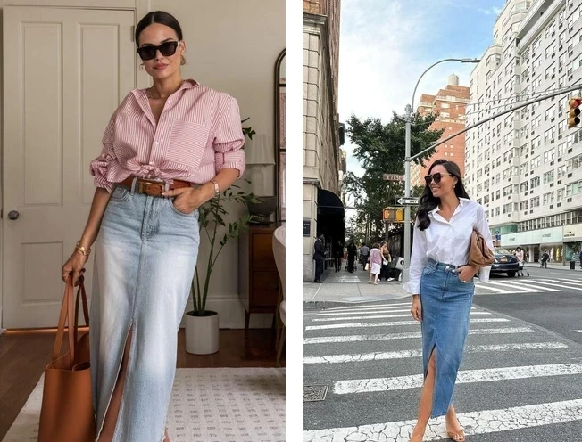 Как стильно носить джинсовую юбку макси в 2025: советы от стилиста